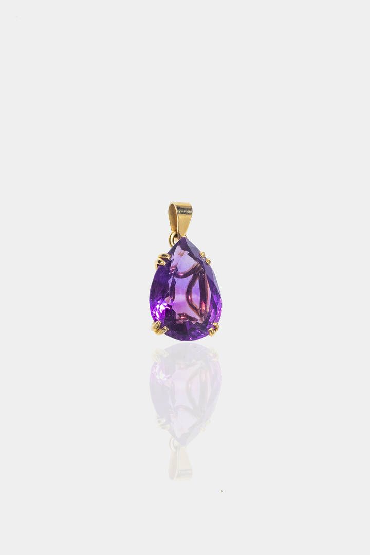 Peso gr 18 2 in oro giallo 9kt con grande ametista taglio a goccia