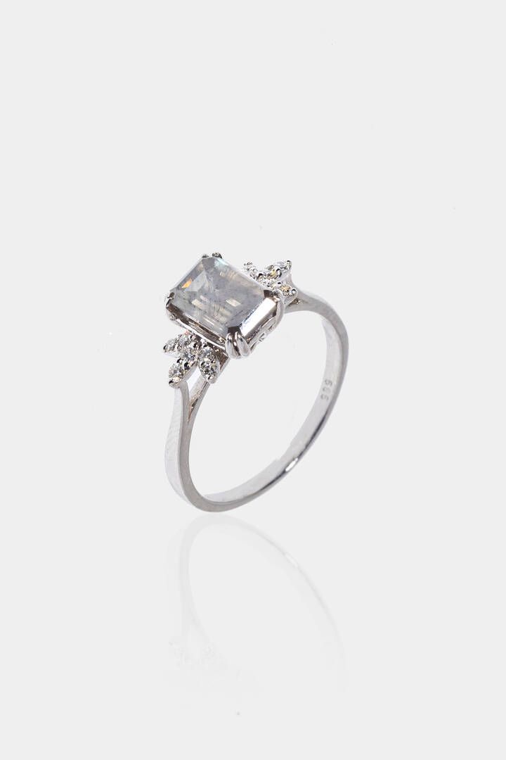 Peso gr 2 3 Misura 12 (52) in oro bianco al centro diamante fancy Grey taglio ottagonale a gradini di ct 1 54 ca purezza I1 ai lati piccoli diamanti taglio brillante di colore bianco per totali ct 0 14. Corredato di certificato AIG n. J3210716121 ril. il 9 Maggio 2022.