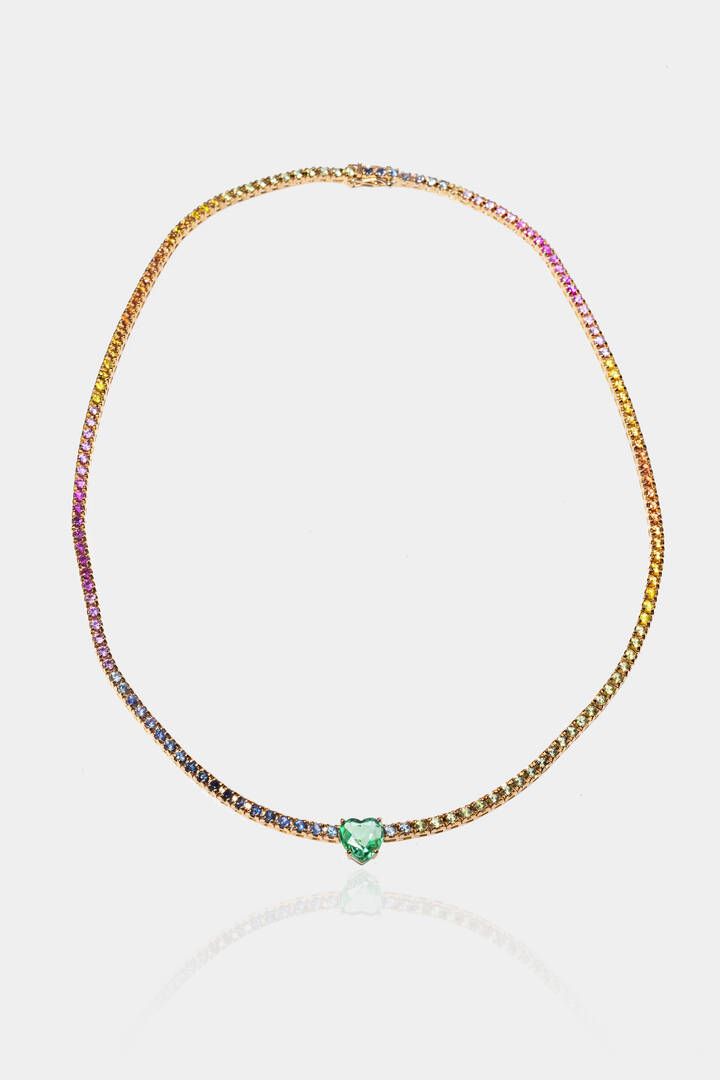 Peso gr 25 2 Lunghezza cm 42 in oro rosa modello tennis con zaffiri colorati per totali ct 8 20 ca ed al centro cuore in tormalina di ct 1 80 ca