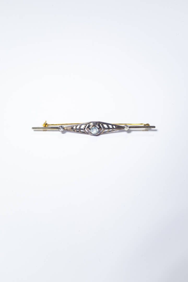 Peso gr 3 8 Lunghezza cm 7 XIX secolo a barretta in oro a bassa caratura ed argento con gemme sintetiche a decoro.