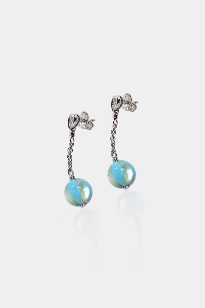 Peso gr 4 4 pendenti in oro bianco con sfere in madreperla e pasta di turchese. [..]