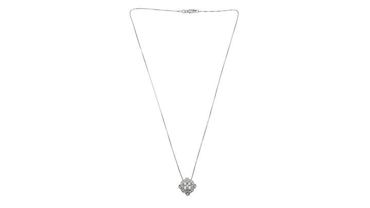 Peso gr 5 3 in oro bianco di forma geometrica con diamanti taglio brillante per totali ct 0 61 ca probabile colore G-H purezza IF-VVS