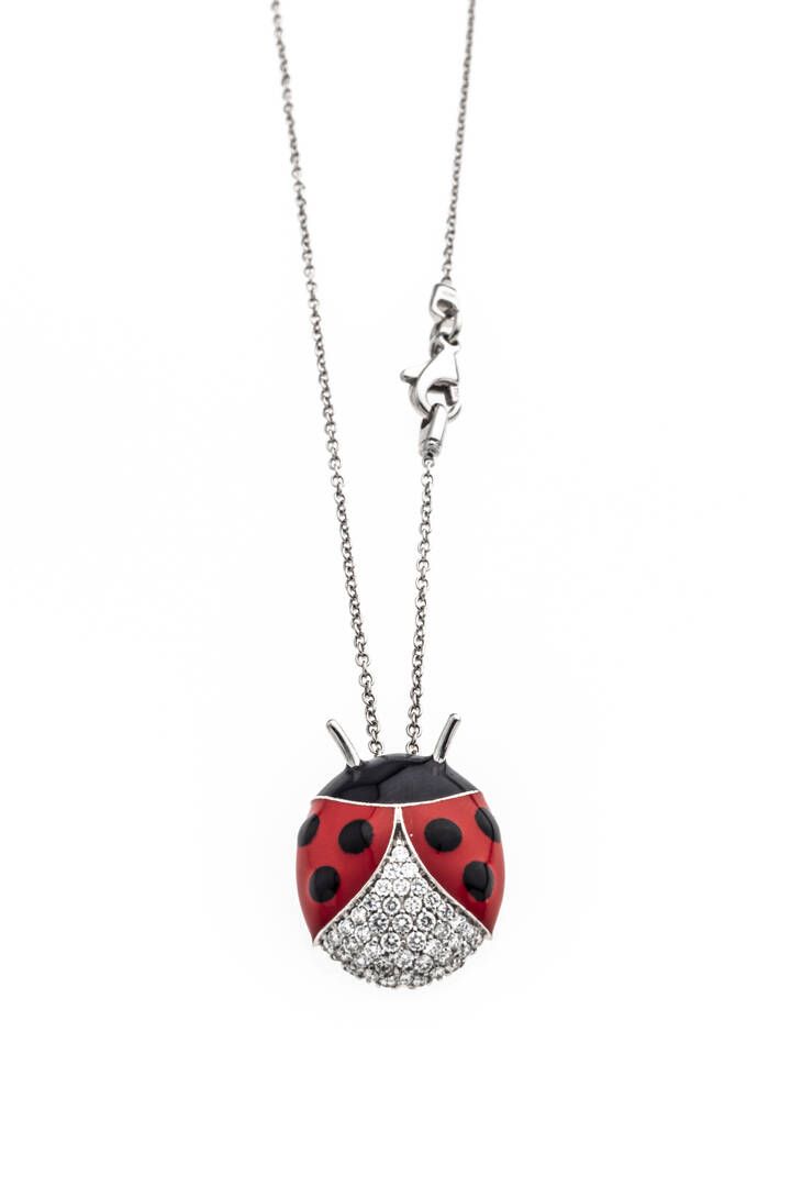 Peso gr 6 9 in oro bianco a forma di coccinella con smalti policromi e diamanti [..]