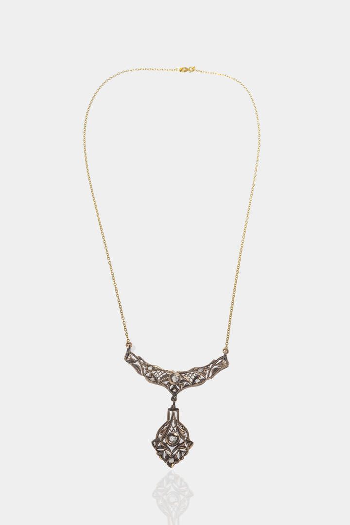 Peso gr 7 9 in oro giallo con ciondolo in oro 9 Kt anni '20 con rosette di diamanti