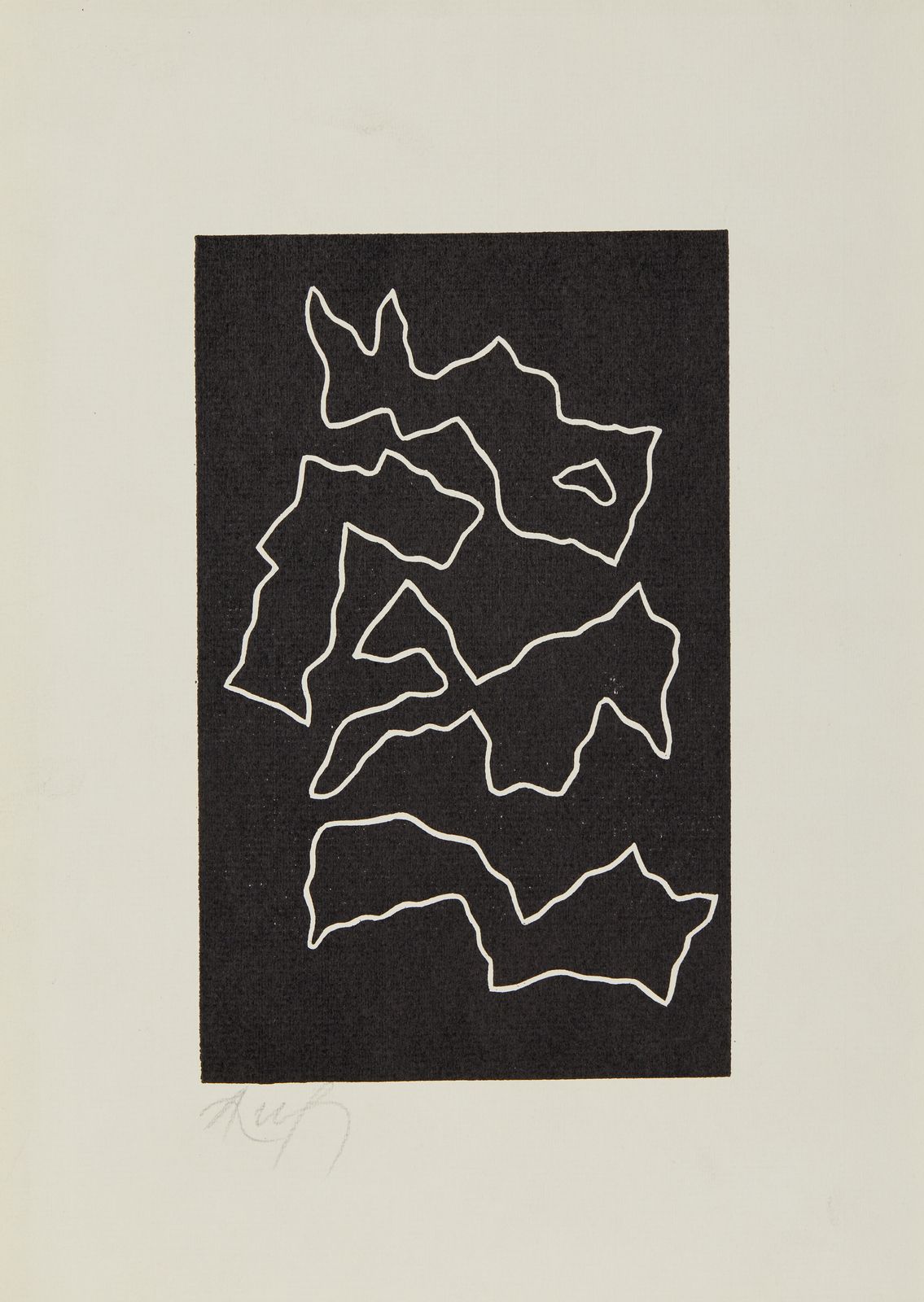 firma a matitaCarl Laszlo, Editions Panderma, Basileaedizione totale: 150 esemplari.Foglio proveniente dal volume contenente una raccolta di 53 opere grafiche e pezzi unici di più di 50 autori tra cui: Enrico Castellani, Victor Vasarely, Hans Arp, e molti altri.
