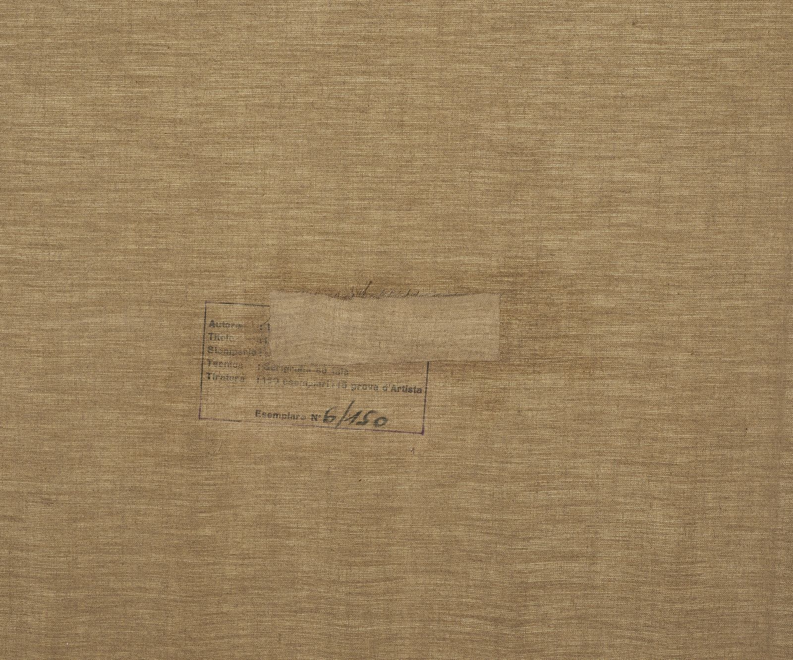 firma e tiratura, es. 6/150sul retro: timbro descrittivoedizione totale:150 esemplari + 15 prove d'artistaStamperia MultiravolDifetti.