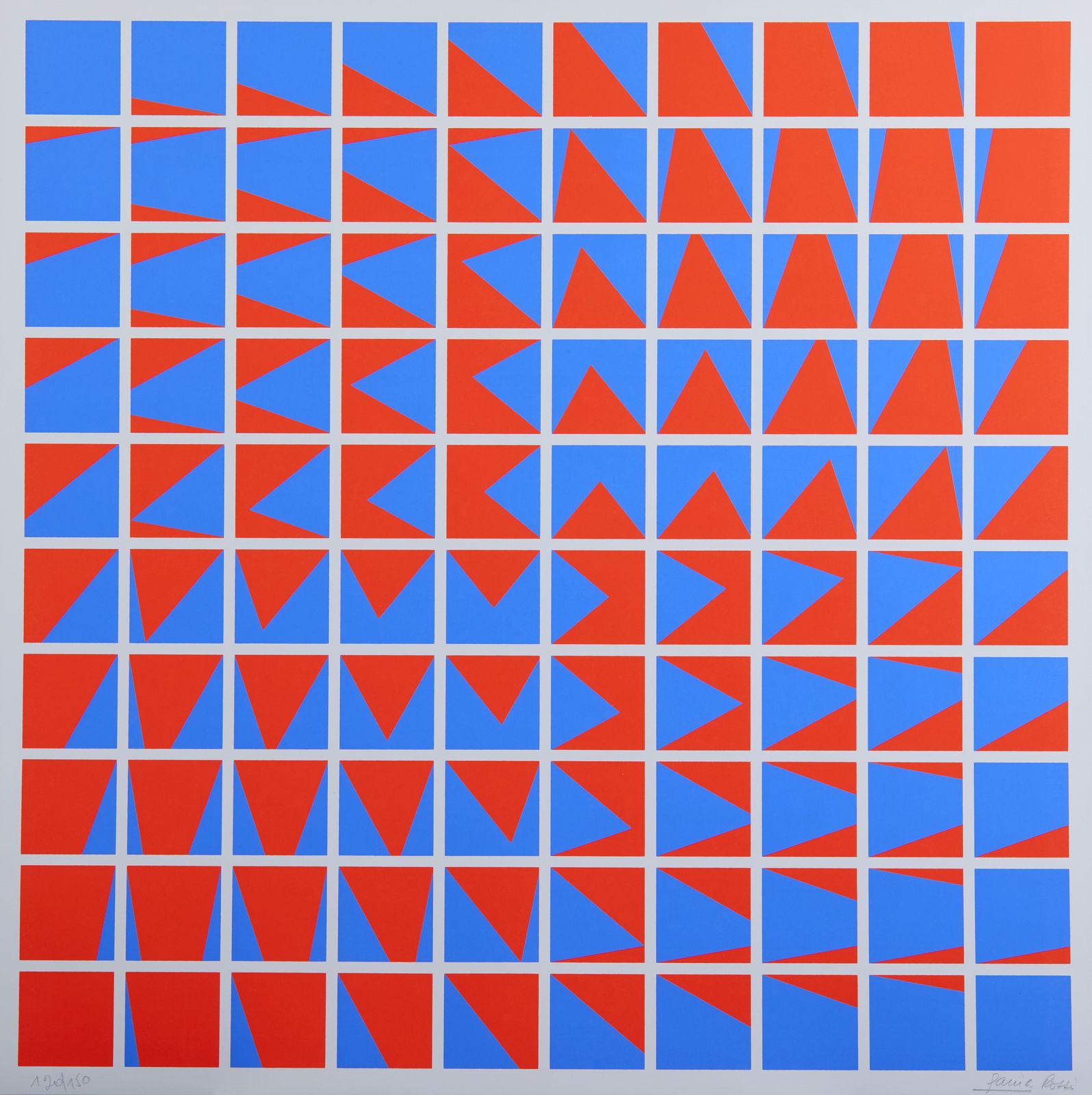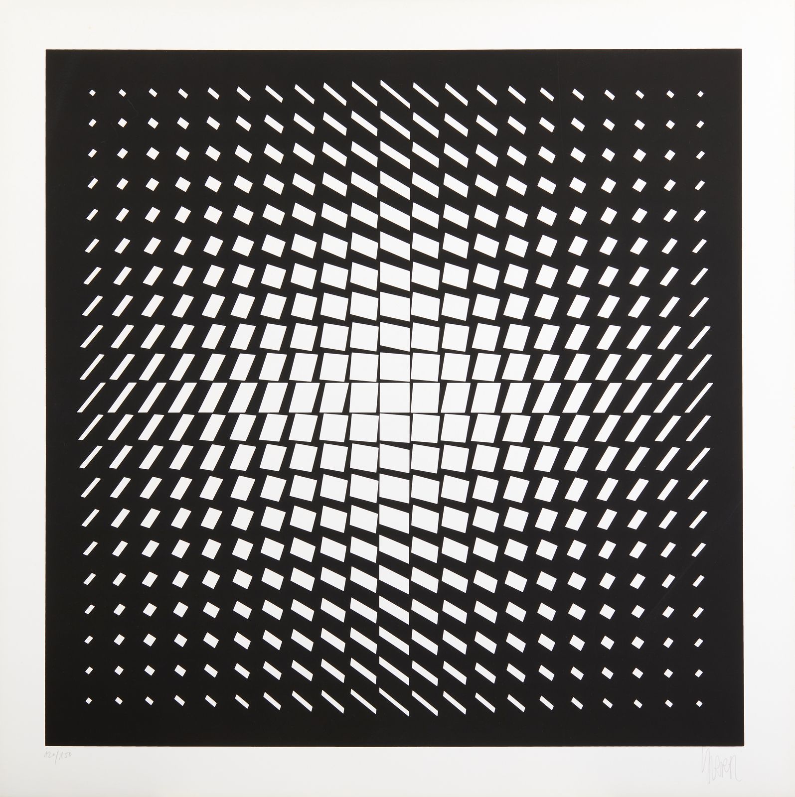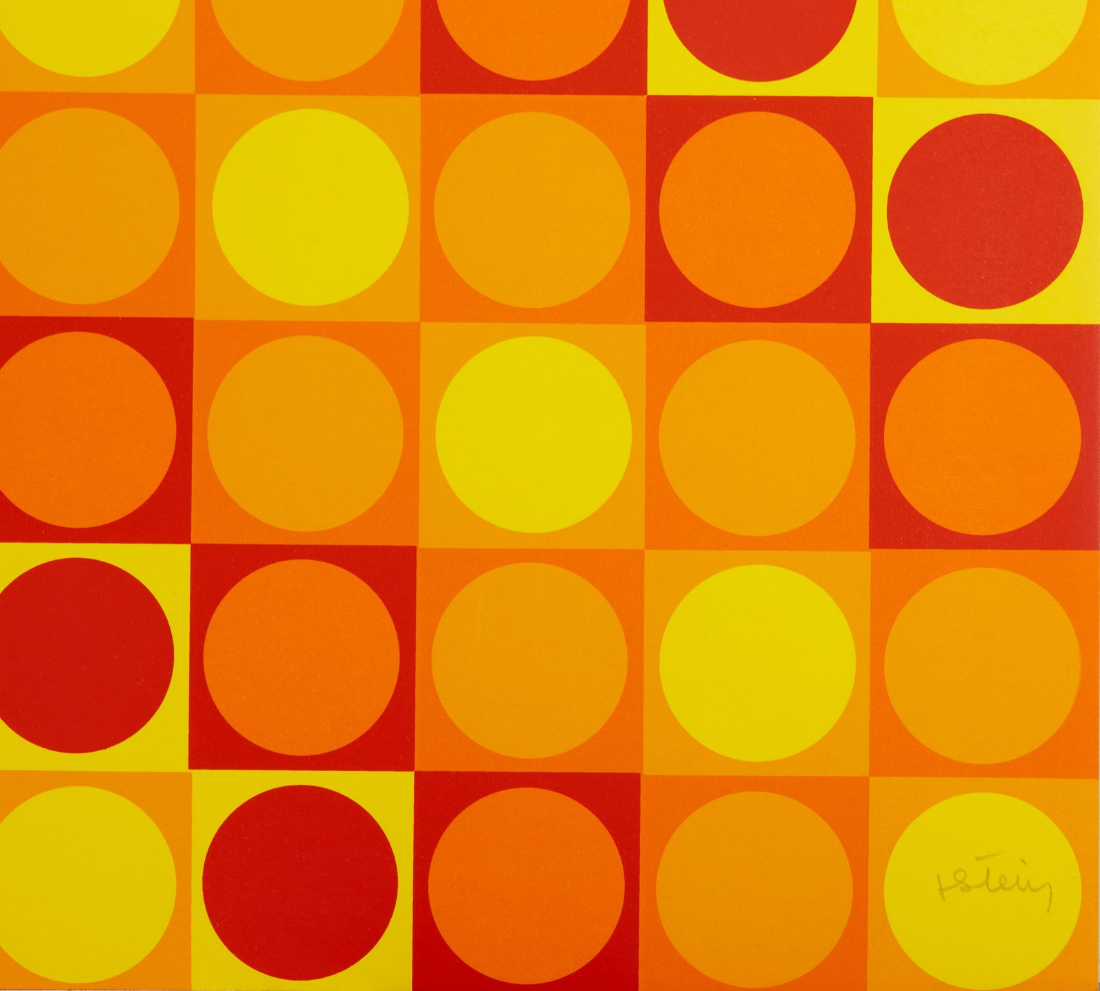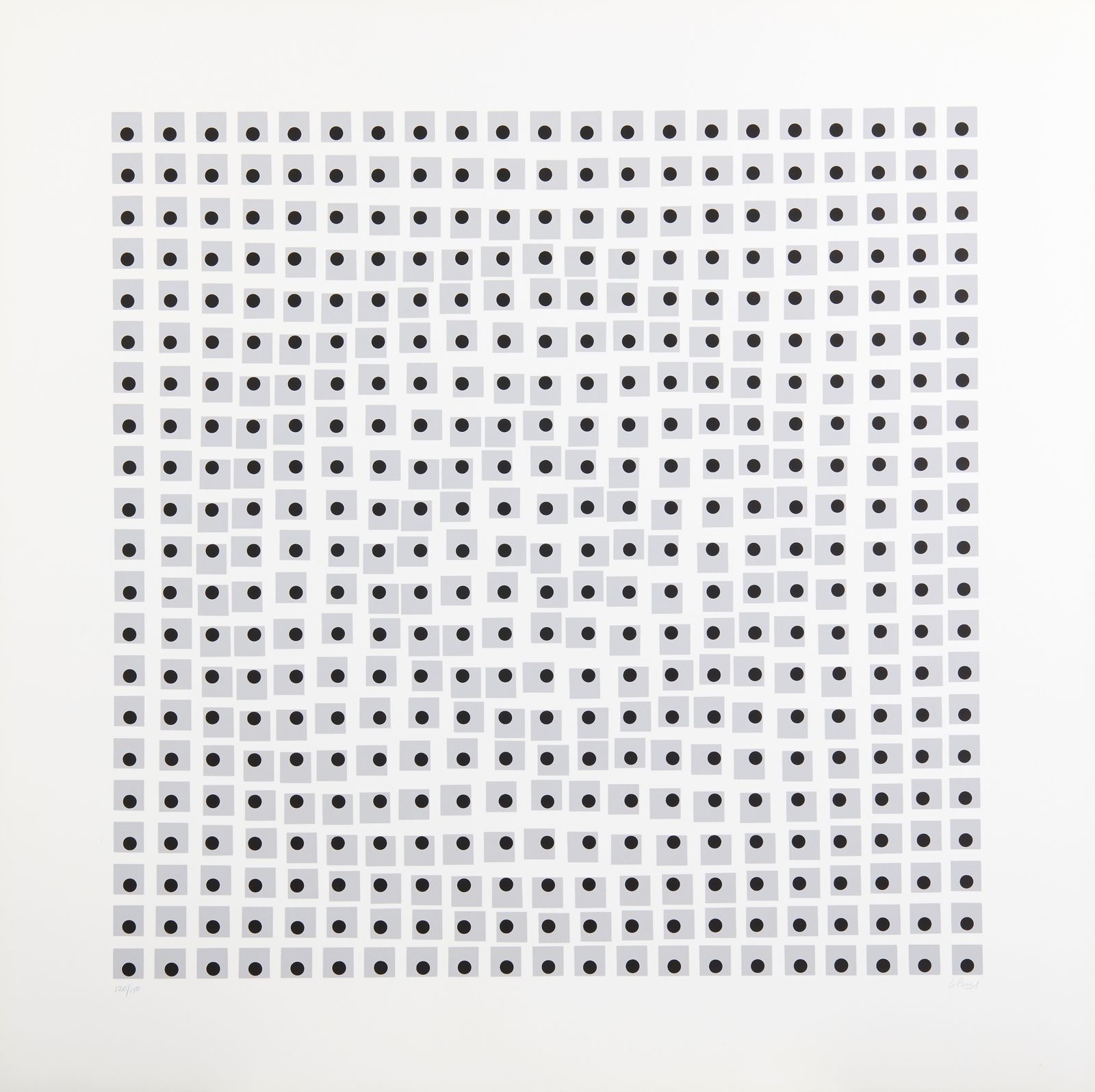 ogni foglio è firmate e numerate, es. 120/150Editore: Galleria Team Colore, Milano.Stampatore: Sam Villa, Milano.Cartella contenitiva in cartone originale e colophon.Cartella realizzata in occasione della mostra retrospettiva, Lago di Como, 20/30 settembre 1975 a cura di Luciano Caramel del Groupe de Recherche d'Art Visuel ( Garcia Rossi, Le Parc, Morellet, Sobrino, Stein, Yvaral).foto esemplificativaLievi difetti.