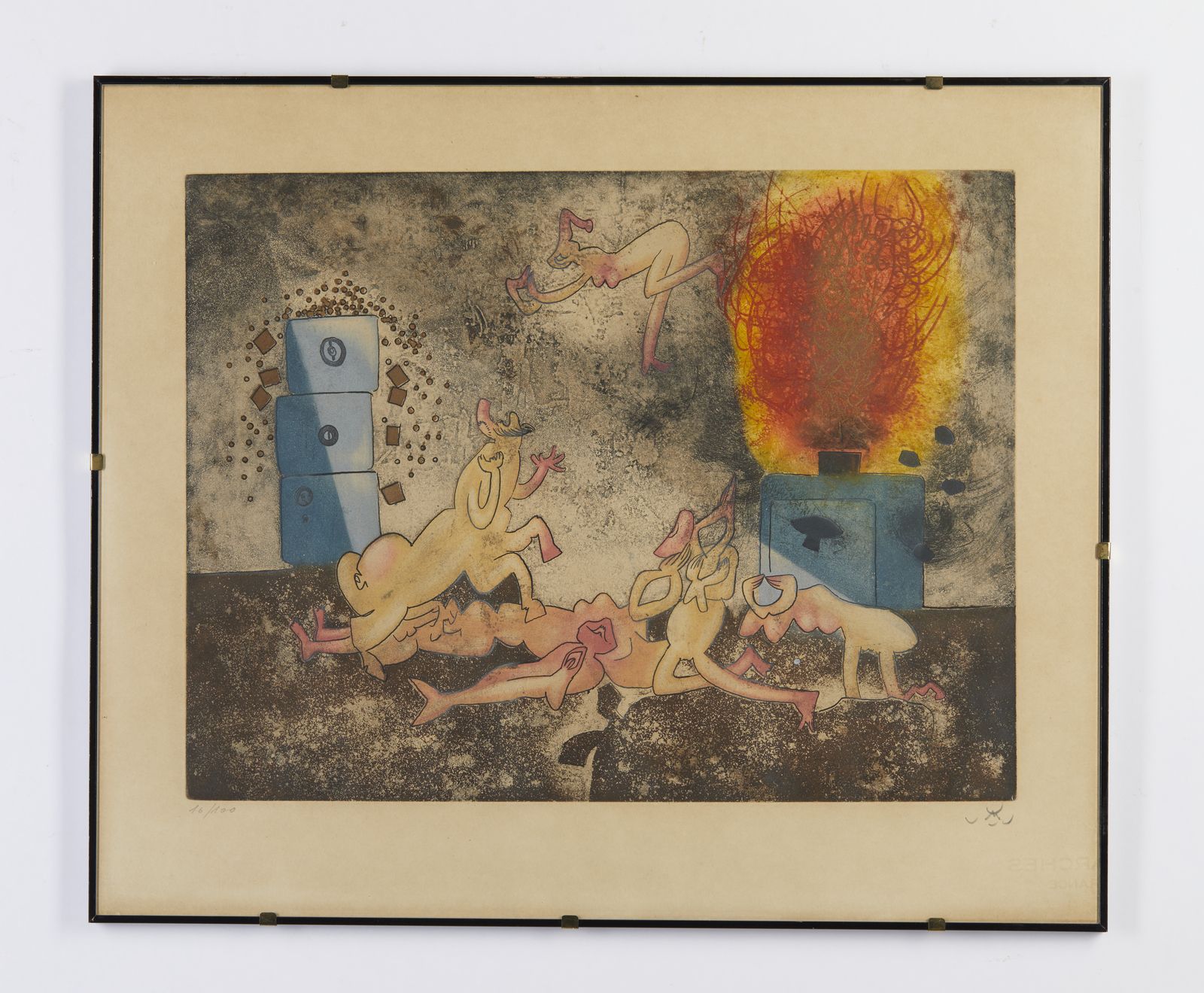 firma e tiratura a matita, es.16/100dimensione lastra: 37,5 x 49,5 cmedizione totale: 100. XXV + H.C.editore: Editions Galerie Arenthon, Parisstampatore: Atelier Georges Visat, ParisBIBLIOGRAFIA:Roberto Matta - L'oeuvre gravé 1943-1974, Sonet-Georges Visat, Stoccolma-Parigi, p.105 tav. 405.