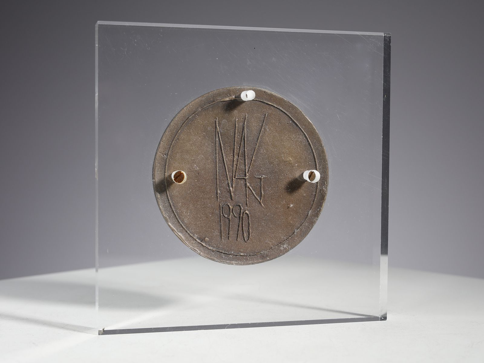 sul retro: firma e anno incisi.entro teca di plexiglass