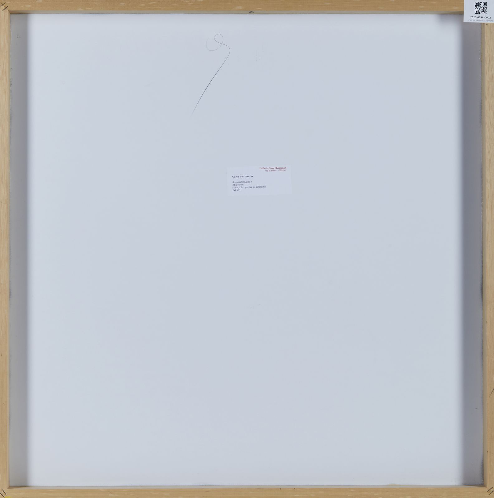 sul retro: etichetta Galleria Suzy Shammah, Milano, es. 1/3.L'opera è corredata dall'autentica dell'artista su fotografia.PROVENIENZA: Galleria Suzy Shammah, MilanoCollezione privata, Brescia.
