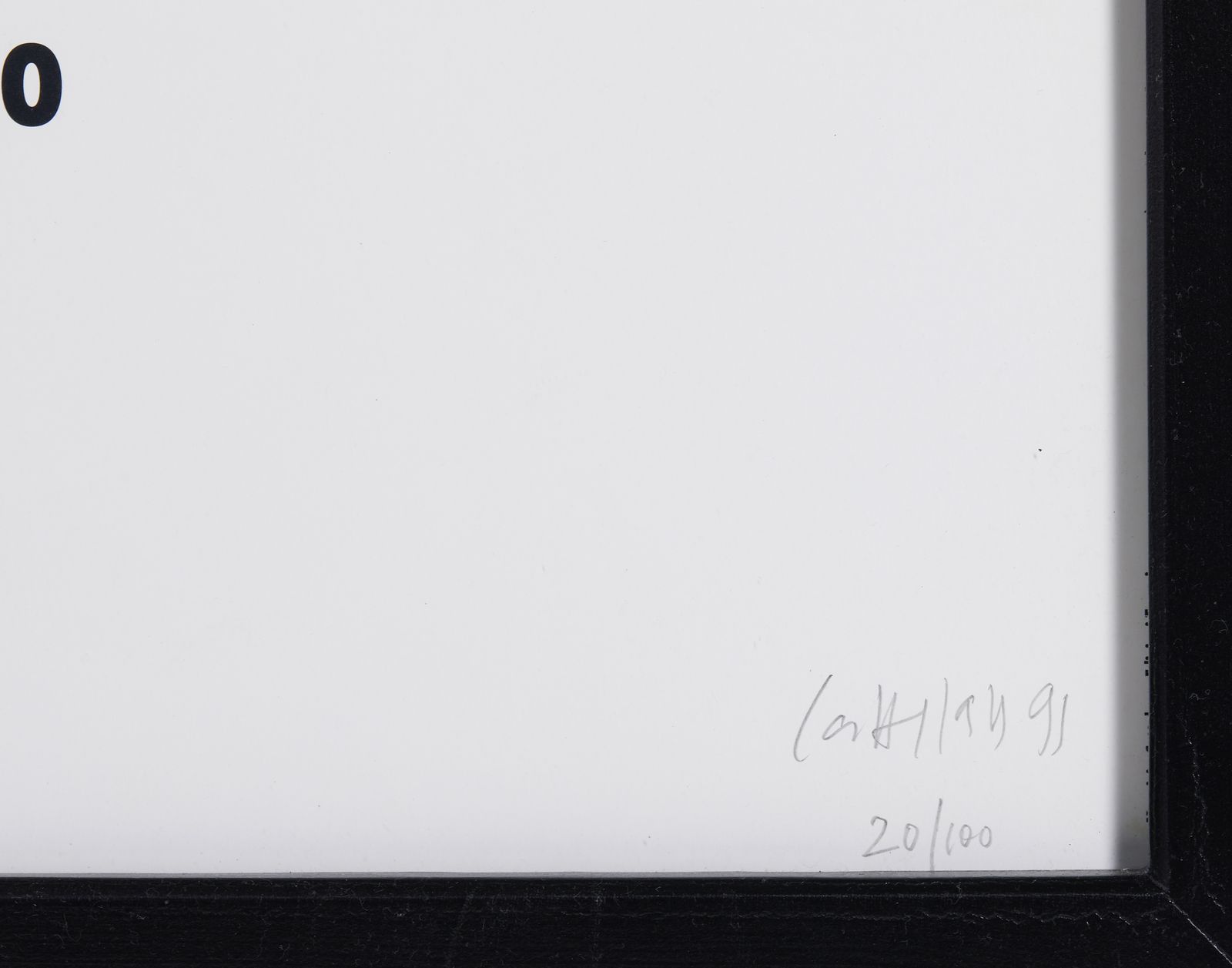 firma, edizione e data, es. 20/100.edizione totale: 100 esemplari.Edizioni Essegi, Ravenna.BIBLIOGRAFIA: N. Spector, Maurizio Cattelan. All, catalogo della mostra tenutasi presso il Solomon R. Guggenheim Museum, 4 novembre 2011 - 22 gennaio 2012, New York, Edizioni The Solomon R. Guggenheim Foundation, New York, p. 188 (altro esemplare)V.Peruzzi, MAURIZIO CATTELAN GRAFICHE E MULTIPLI - graphics and multiples, 2012, p. 57 (altro esemplare)Maurzio Cattelan, Catalogo realizzato in occasione delle mostre presso il Centre d'art - Espace Jules Verne, Brétigny-sur-Orge, Le Consortium, Dijon, Galerie Emmanuel Perrotin, Parigi, edizioni Centre d'art - Espace Jules Verne, Le Consortium, Galerie Emmanuel Perrotin, 1998, s.p ( altro esemplare)