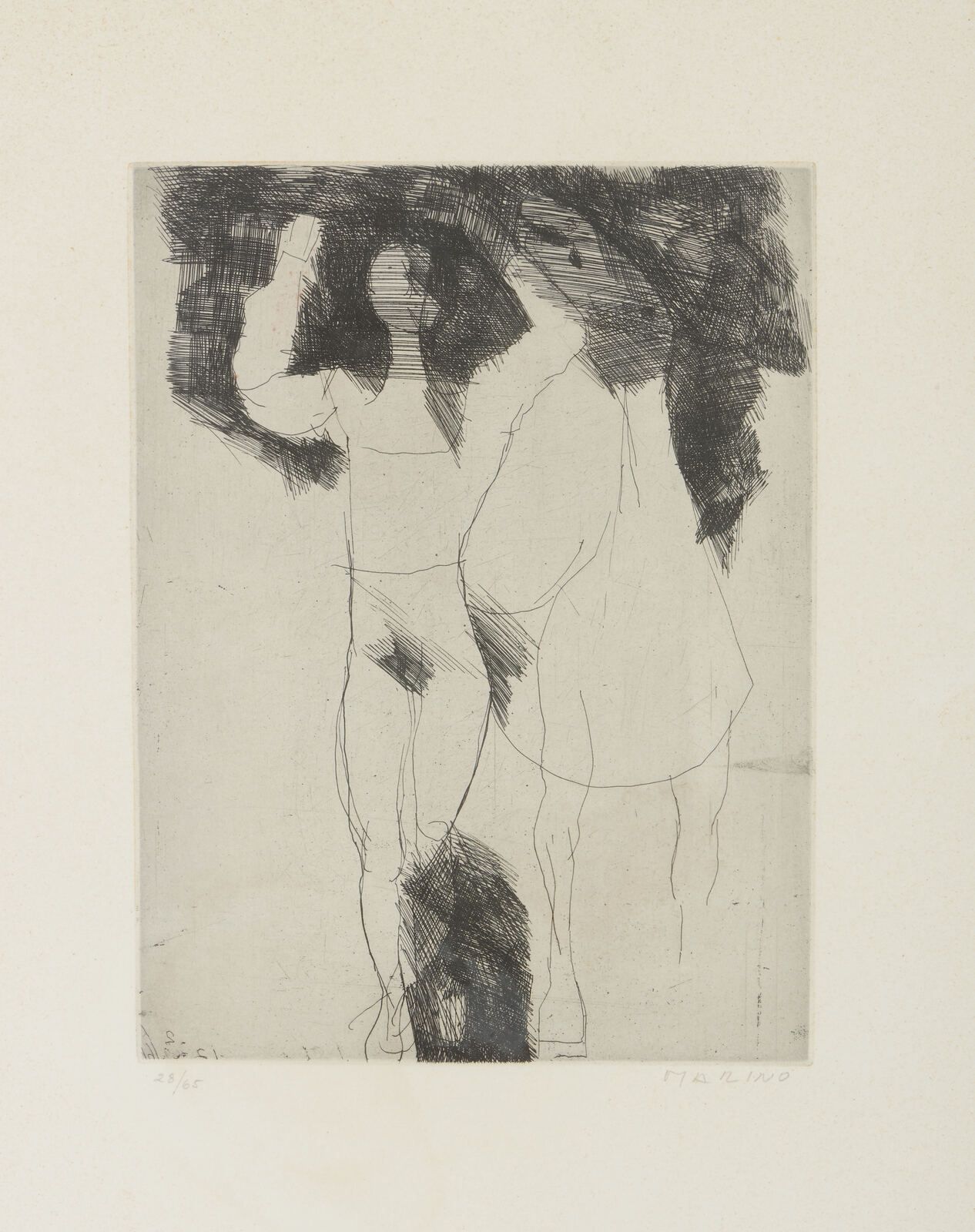 tiratura e firma a matita, es. 28/65.dimensione lastra: 33x24.8 cm. editore: Fratelli Crommelynck, Parigi. stampatore: Atelier Fratelli Crommelynck, Parigi. edizione totale: 65 esemplari firmati e numerati da 1/65 a 65/65 + 15 esemplari numerati da I/XV H.C a XV/XV H.C. BIBLIOGRAFIA: Marino Marini, Catalogo ragionato dell'Opera grafica (Incisioni e Litografie) 1919- 1980, Edizioni Graphis Arte, a cura di Giorgio e Guido Guastalla, 1990, n.A32.