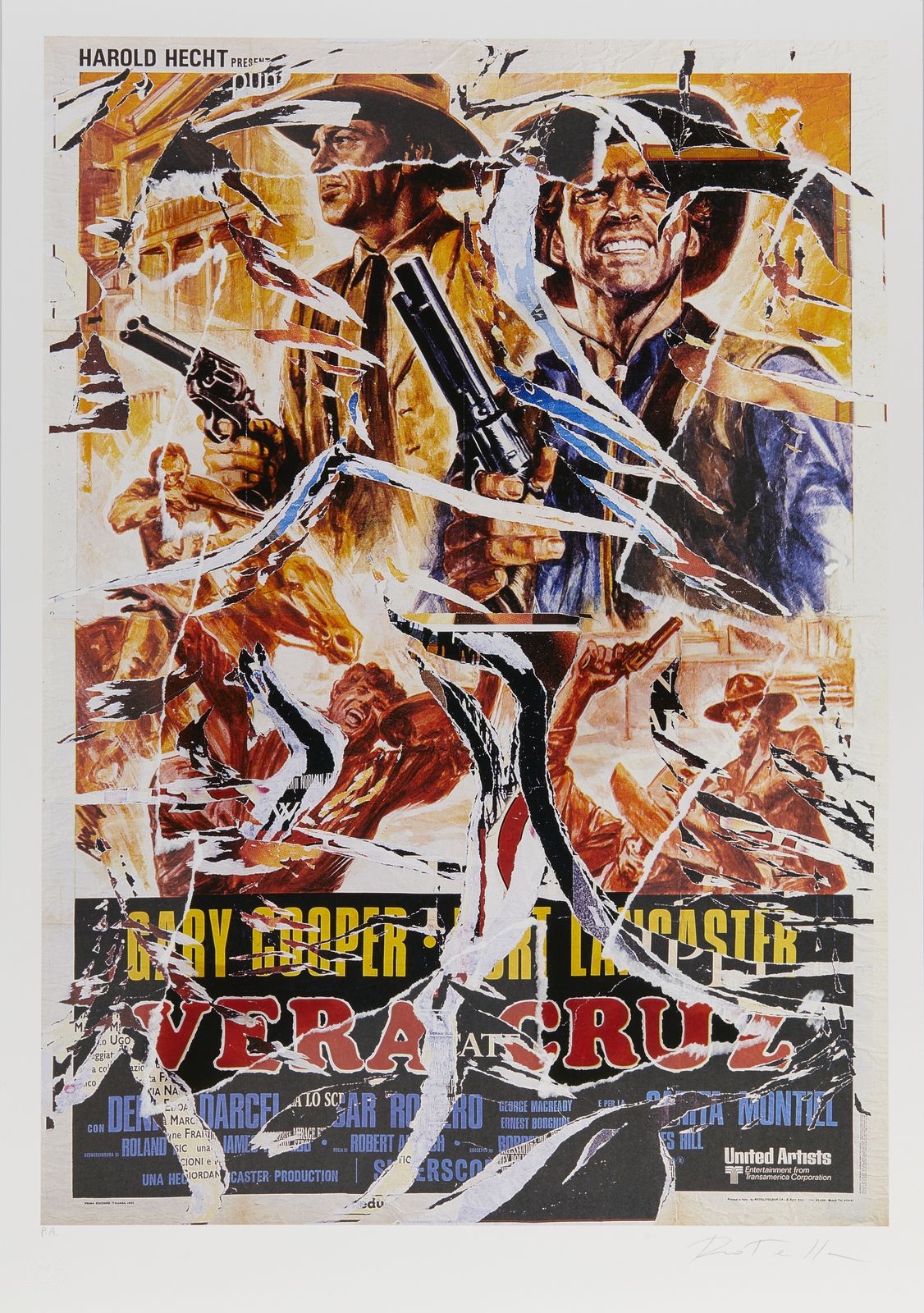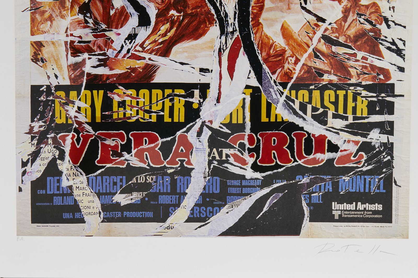 tiratura e firma a matita, es. P.A.timbro a secco Fondazione Mimmo Rotella, Milano.edizione totale: 125 esemplari in numeri arabi, 50 in numeri romani e 20 prove d'artista.BIBLIOGRAFIA:E. Pontiggia, Mimmo Rotella: multipli décollages, Silvana Editoriale, Cinisello Balsamo, 2004, p.86