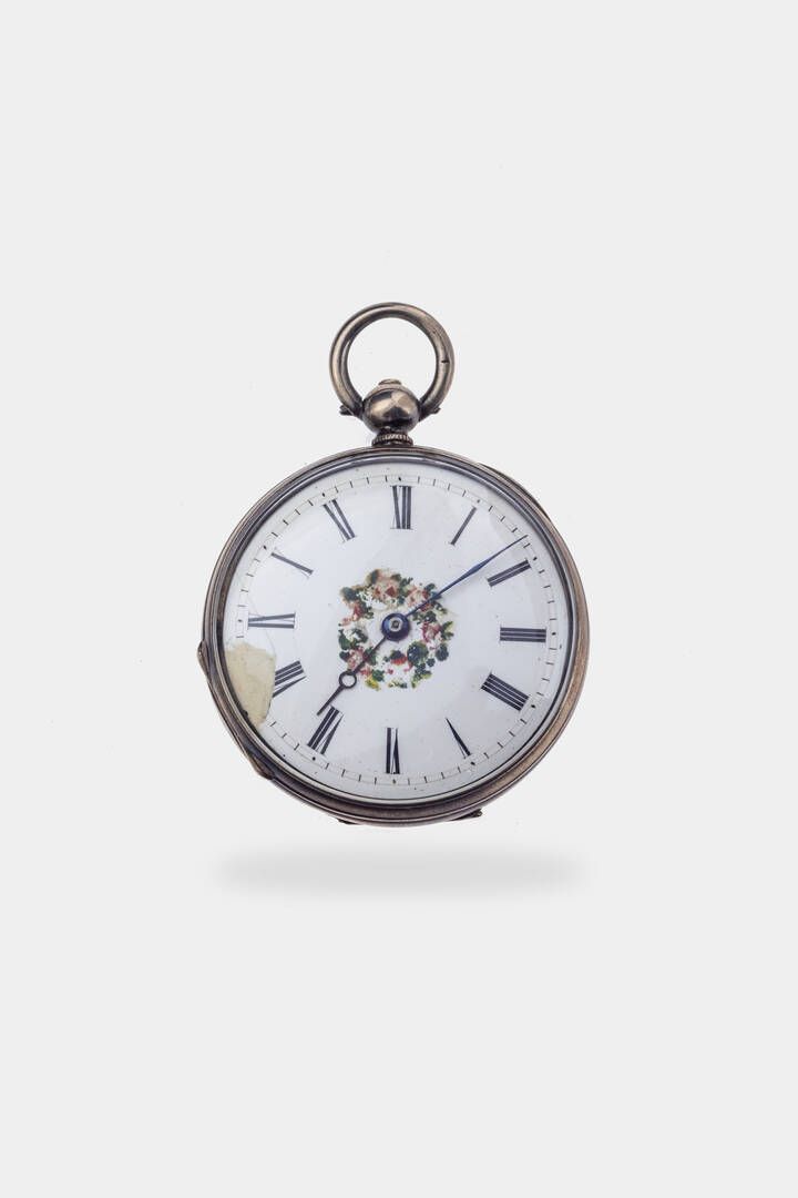 Diam. 44 mm Casse in argento incise (difetti ed ammaccature). quadranti in smalto (difetti-restauri-mancanze) con numeri romani e minuteria a binario. Movimento con scappamento a cilindro. Da revisionare.