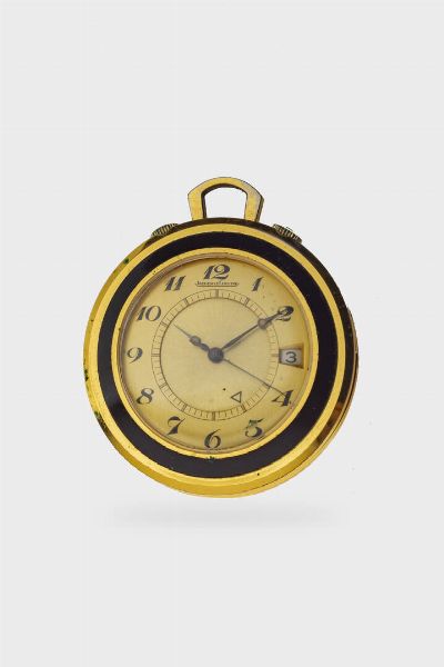 Diam. 42 mm Cassa placcata con fondello a pressione e piedistallo retrattile da tavolo. Quadrante champagne con numeri Breguet serigrafati. Movimento a carica manuale.