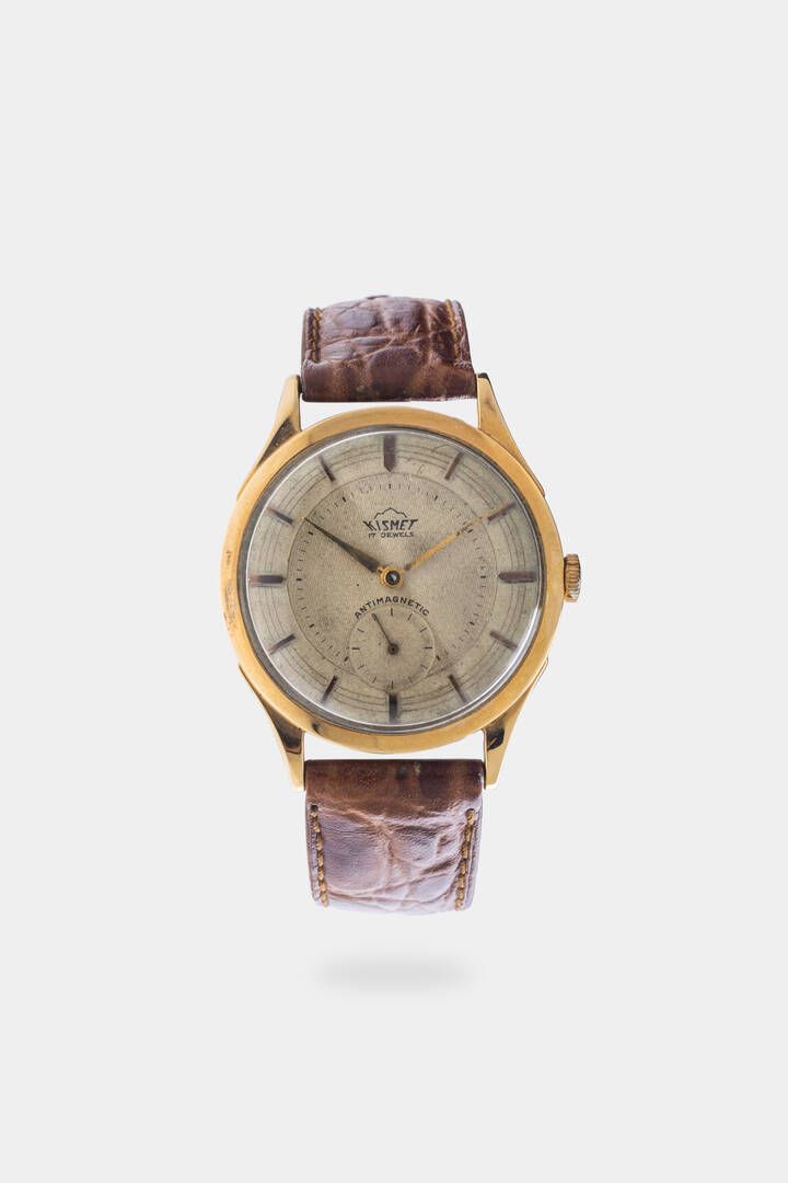 Diam. 35 mm Cassa in oro con fondello a pressione. Quadrante argento bitonale patinato con indici geometrici applicati. Contatore dei secondi continui al 6. Movimento a carica manuale. Da revisionare. Il cinturino dell'orologio qui fotografato poiché eseguito con pellame di specie protetta non è in vendita ma presentato a solo scopo dimostrativo/ espositivo. Al momento della vendita dell'orologio tale cinturino non verrà fornito al nuovo acquirente