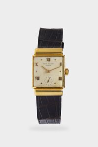 33x43 mm Cassa in oro di forma con fondello a scatto. Quadrante argento con indici geometrici applicati ed indicazione [..]
