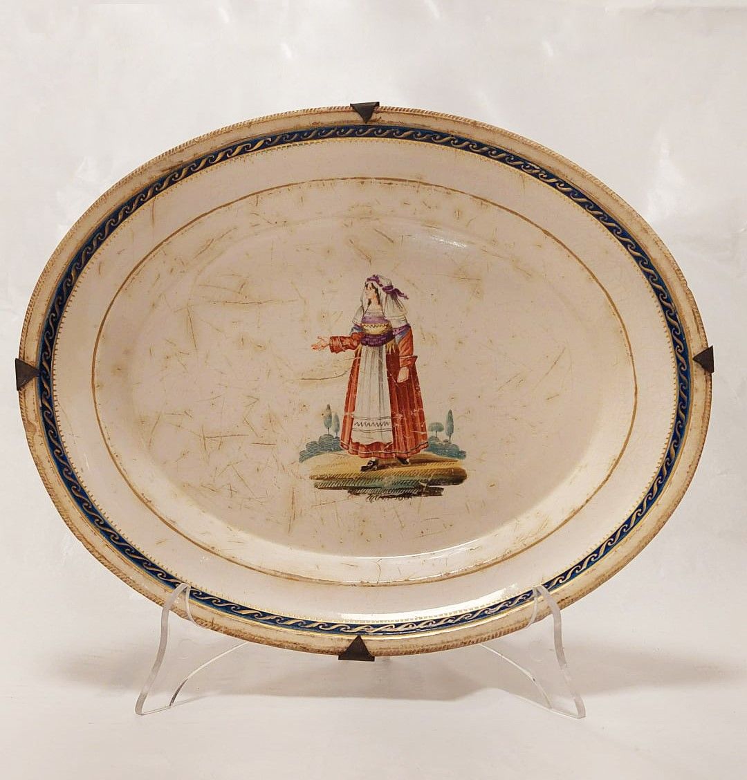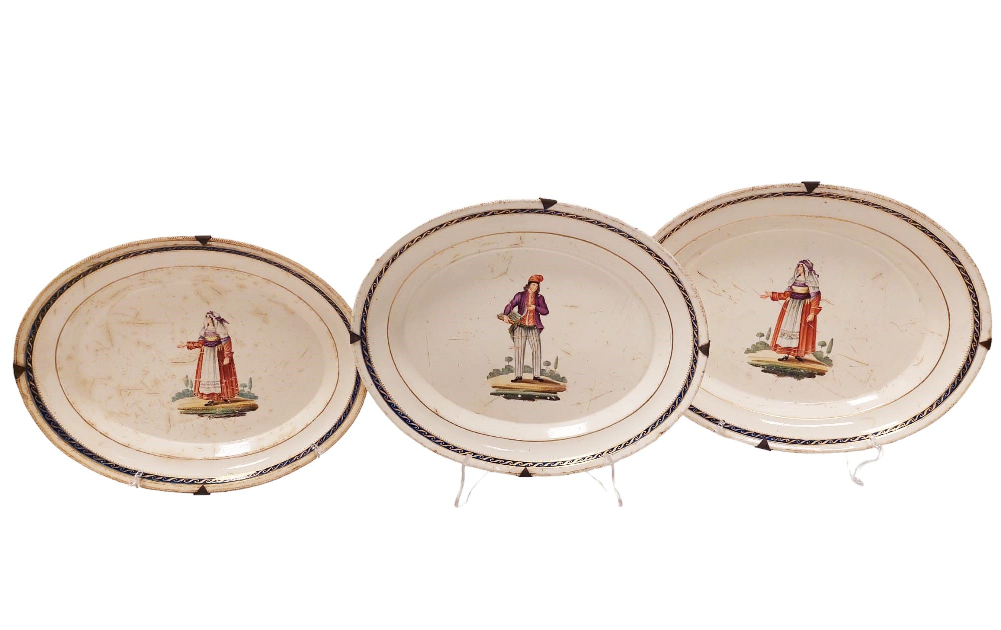 Entrambi gli opifici sono situati in Via Marinella a pochi numeri civici di distanza e nell’Esposizione del 1810 sono premiati con una medaglia di bronzo presentando manufatti ceramici inconfondibilmente marcati FMGN. Nel repertorio decorativo Migliuolo - Giustiniani una certa fortuna dovette riscuotere decorazione su vasellame delle Vestiture del Regno anche se in versione semplificata rispetto ai noti modelli della Real Fabbrica Una serie di eleganti piatti è poi campita da soggetti singoli di popolani in costume regionale, ma include figure di borghesi, militari ed antichi guerrieri.