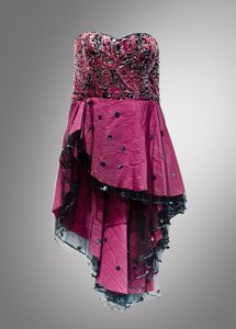 Abito da donna corto fucsia con bustino con applicazioni (da Vivė)