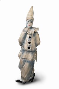 Scultura in polistirolo garzato dipinto in policromia con in abiti in stoffa, h 160x45x22 cm Provenienza: Teatro [..]