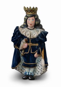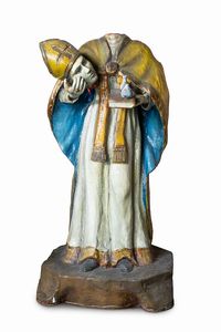 Scultura in polistirolo garzato in policromia, con abiti in stoffa e decorazioni a rilievo, h cm 130x57x17 Provenienza: [..]