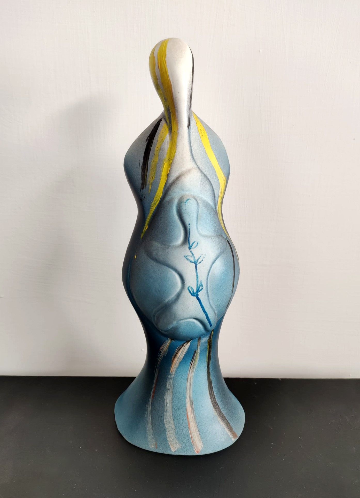 Nella sua ricerca espressiva, che spazia nel mitico, nell’arcaico, nel sacro, i materiali poveri (ferro, rame, ottone) sono impiegati con amorevole manualità artigiana.