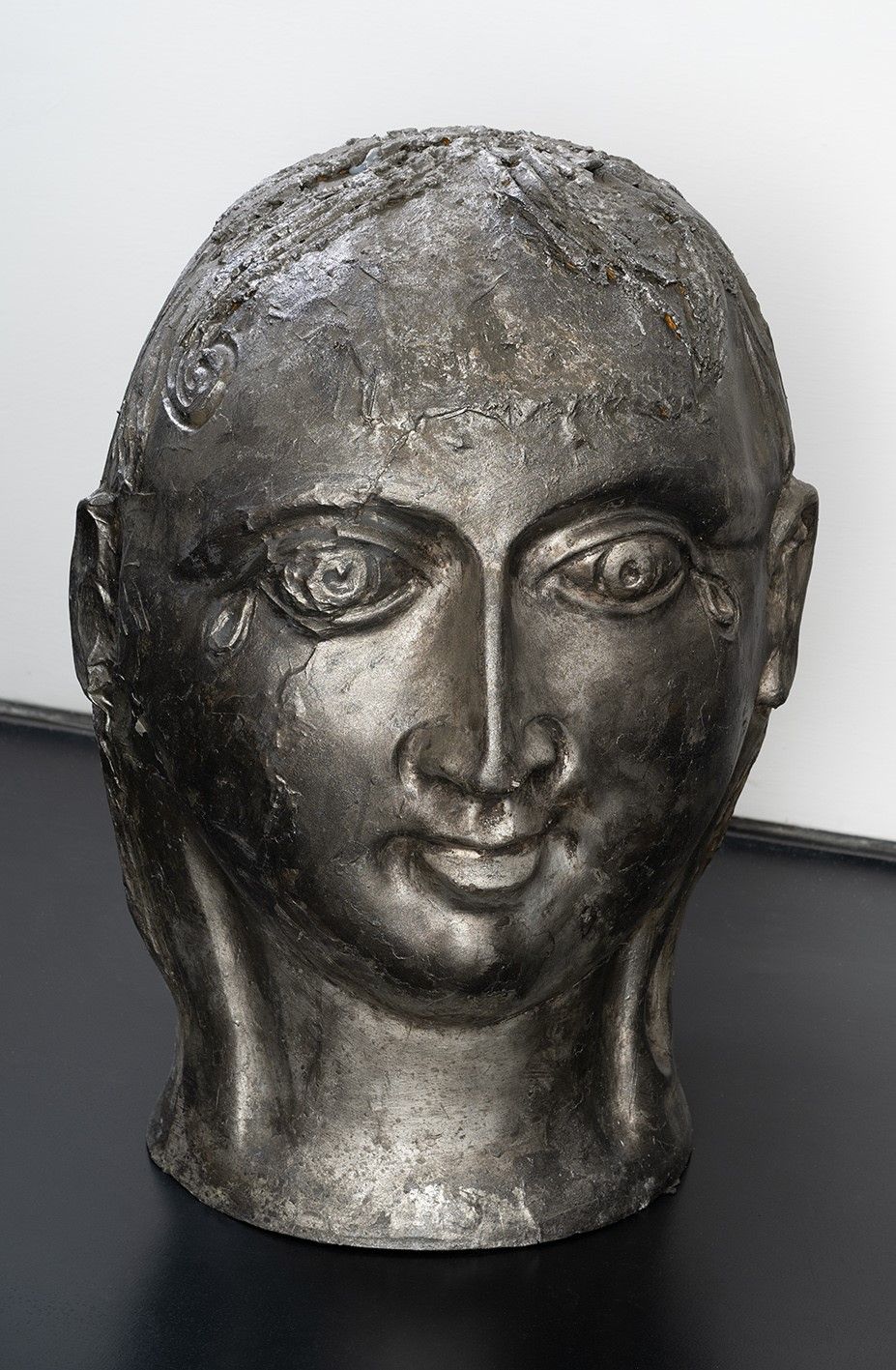 Testa in vetroresina dipinta argento (da “Piedigrotta”)