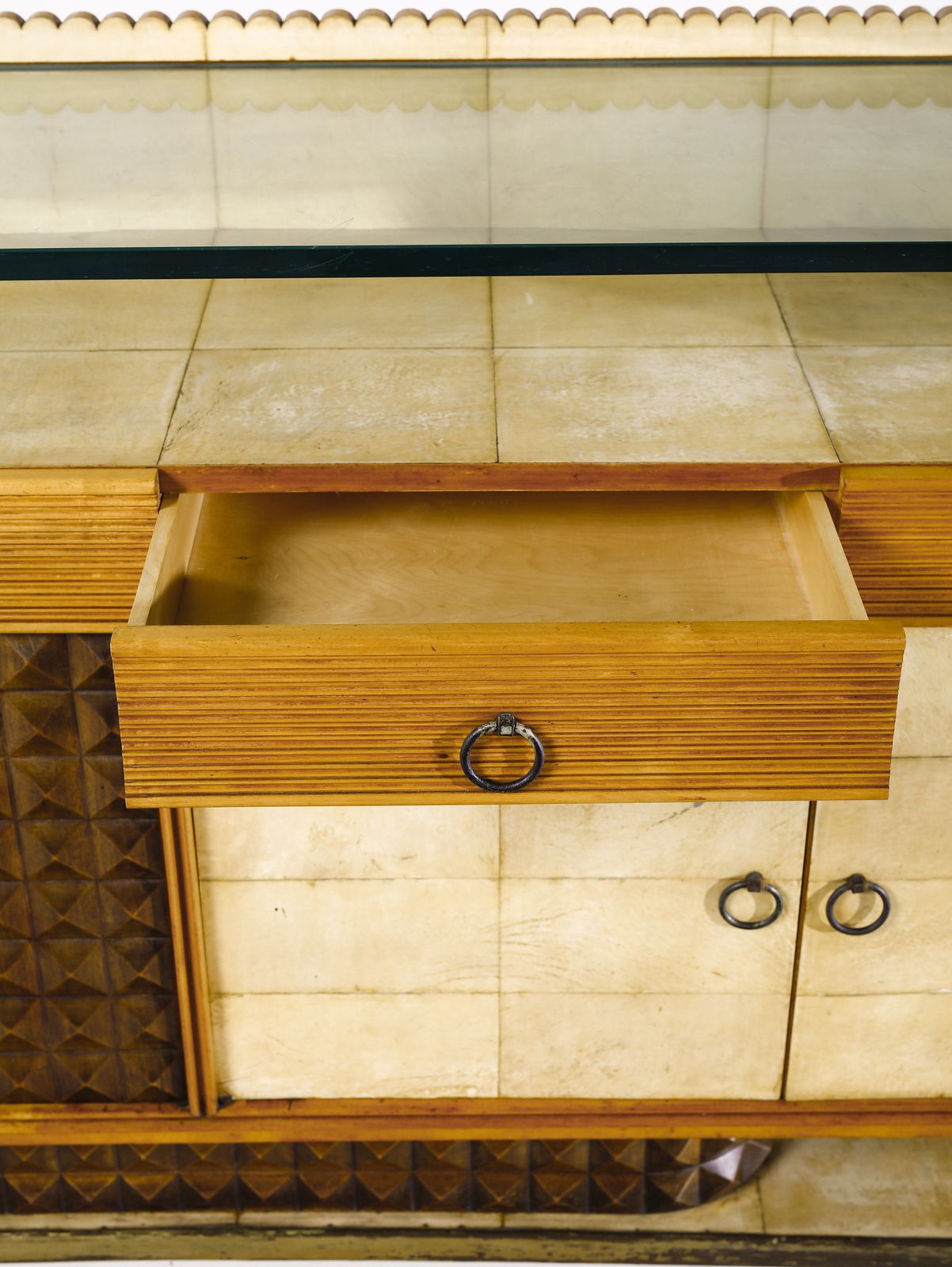 Credenza a cinque ante e cinque cassetti con anta centrale ed elemento di sostegno [..]