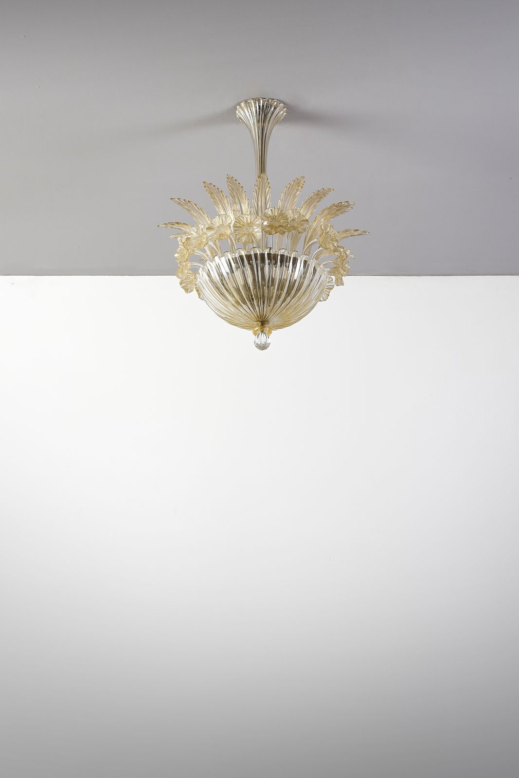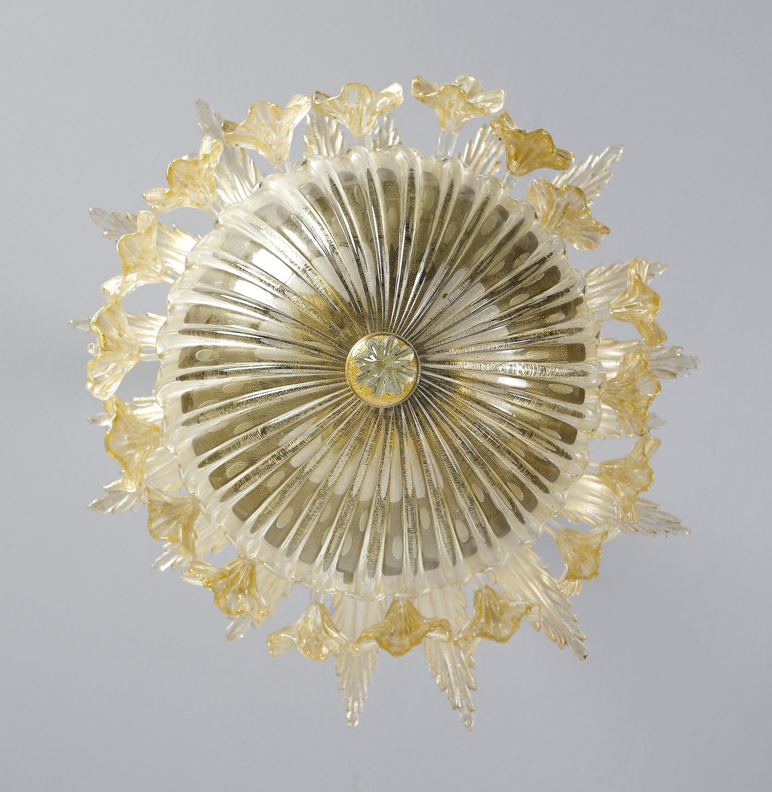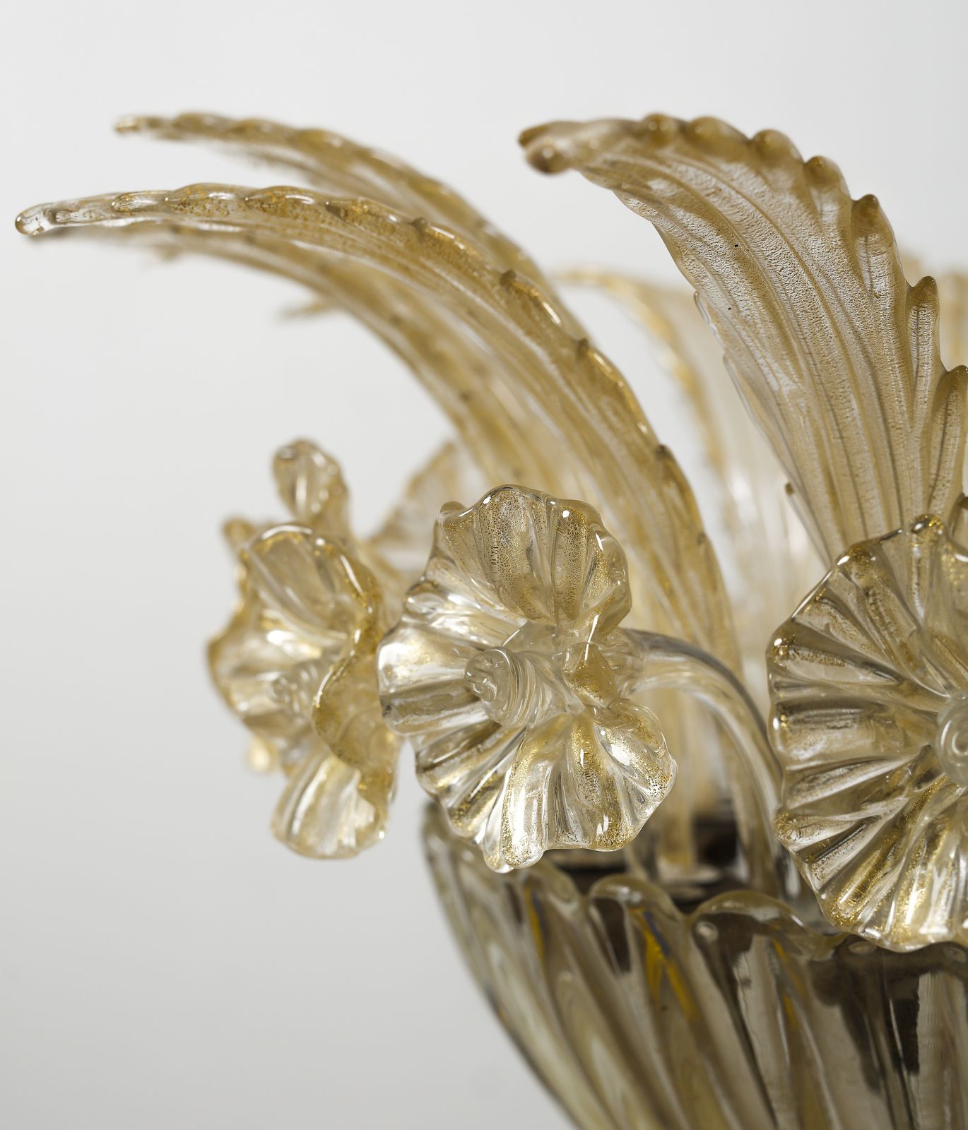 Lampada a sospensione decorata con foglie e fiori, Murano