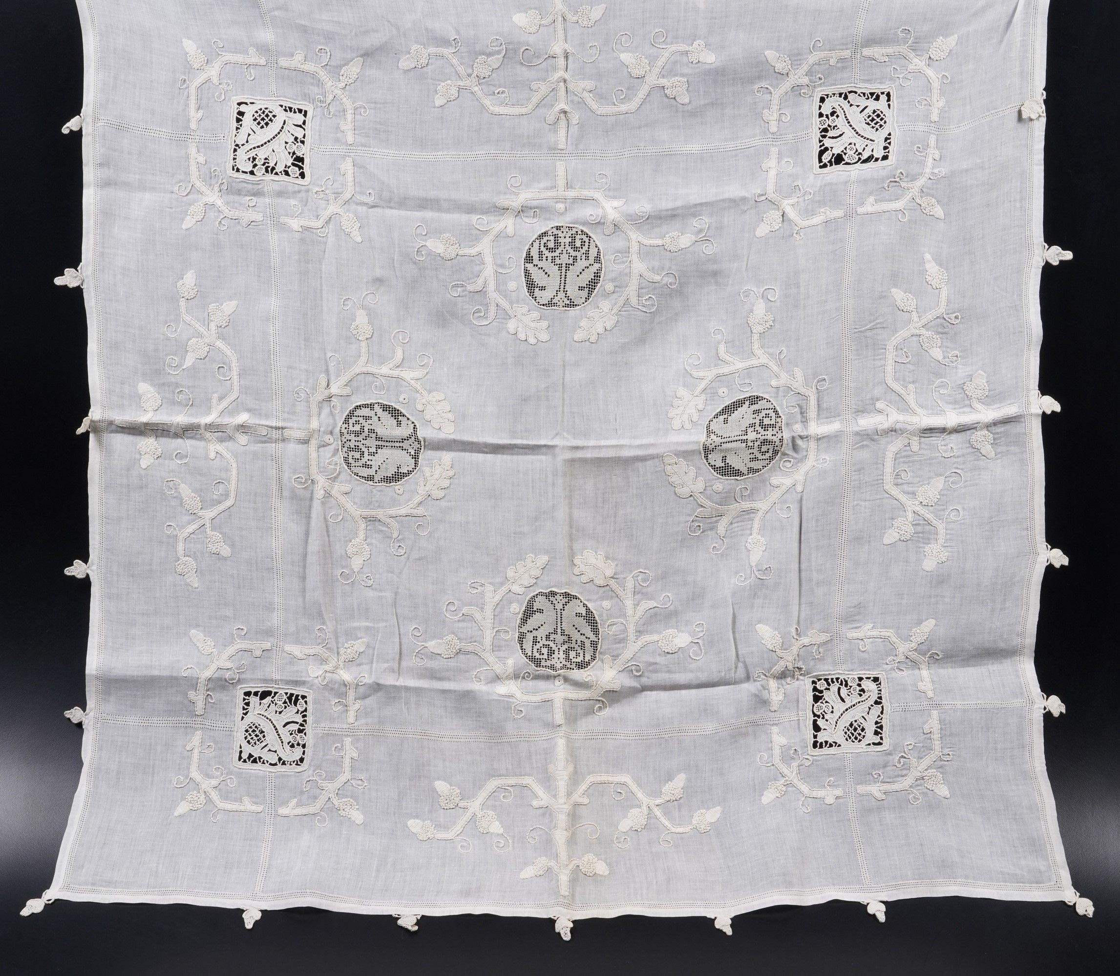 Una tovaglia da tè e un centrino quadrato.