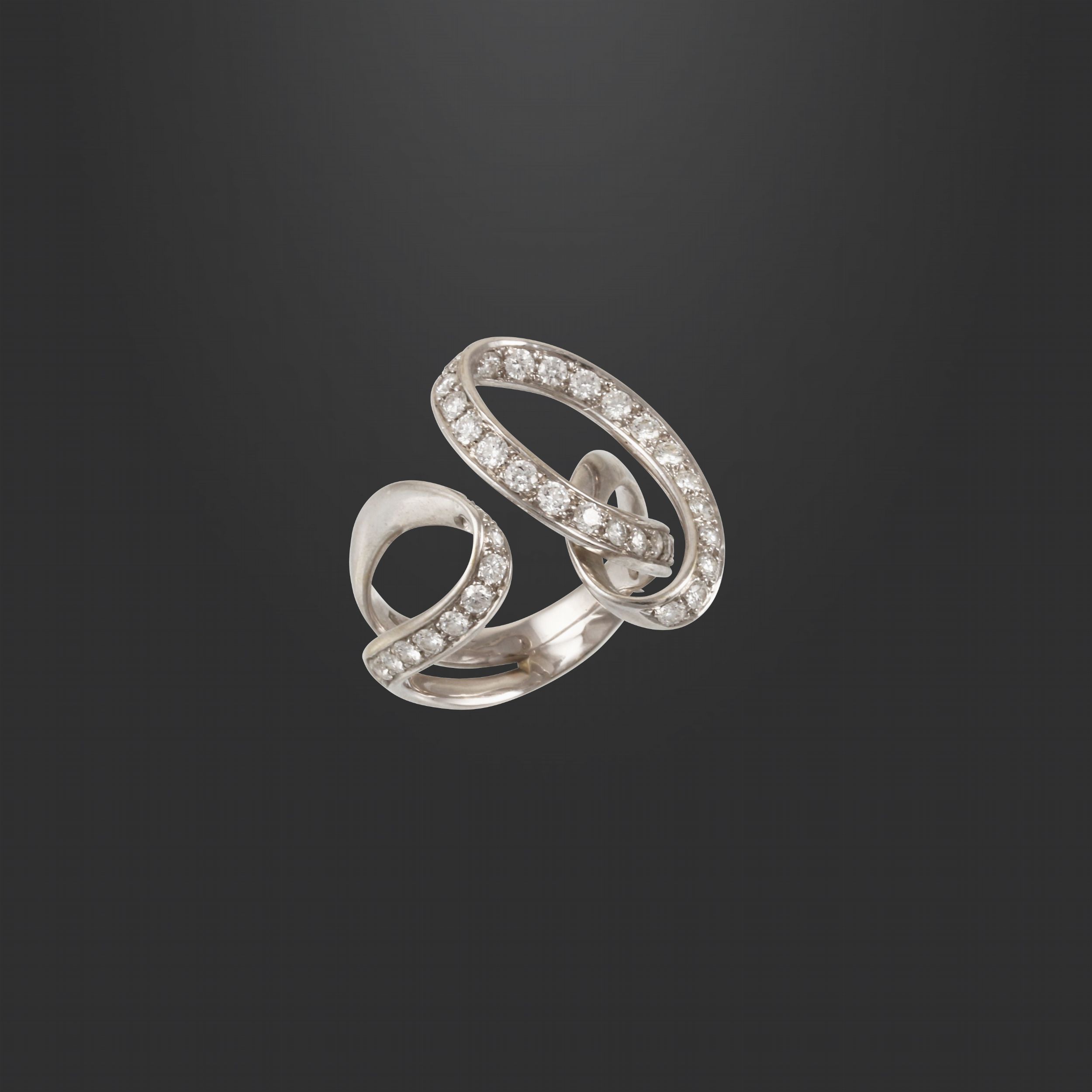 in oro bianco a nastro ritorto con brillanti del peso complessivo di 1,50 ct ca., gr. 11,9.Misura 18,5Firmato: Scavia