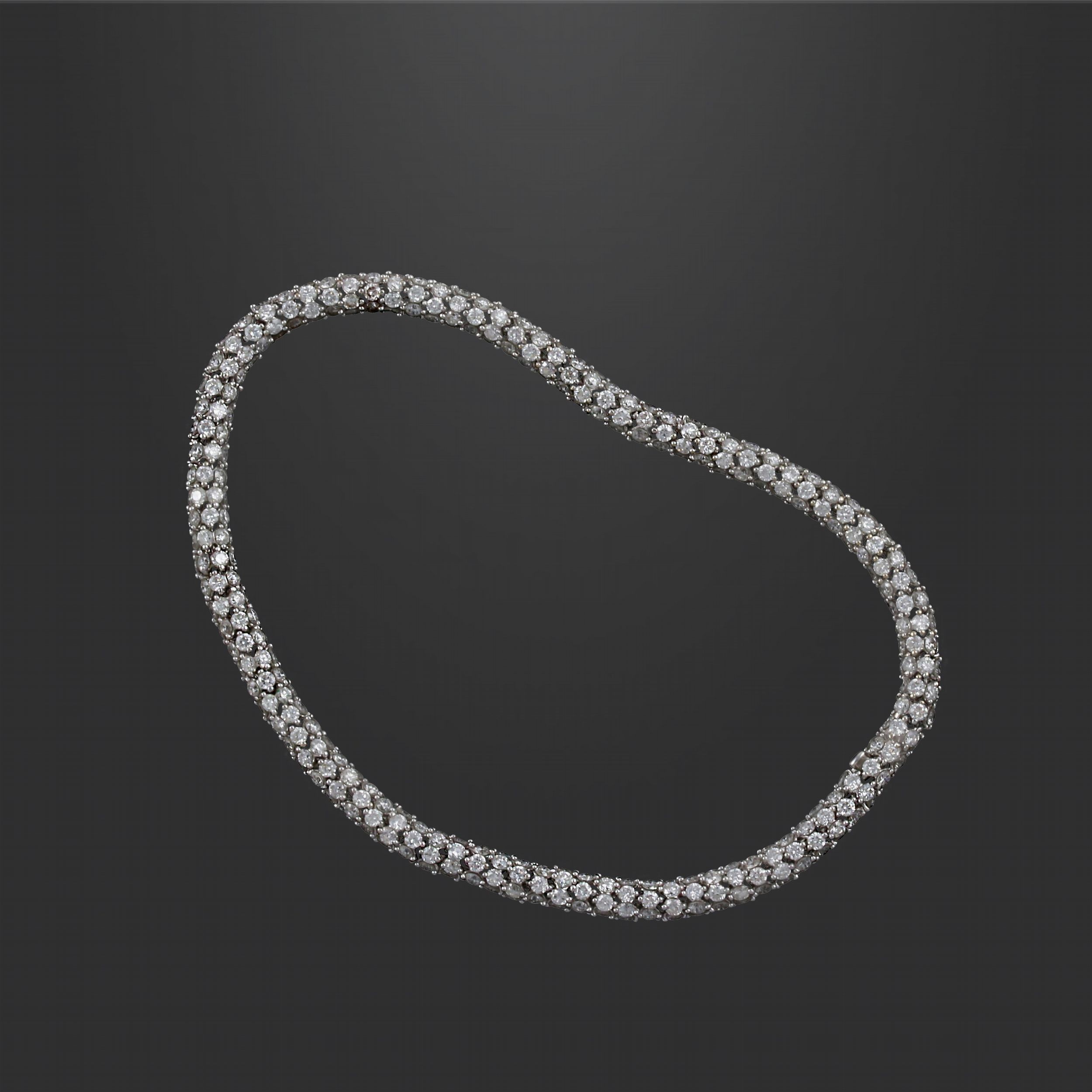 in oro bianco a morbido nastro tubolare interamente ornato da brillanti del peso complessivo di 4,50, ct ca., gr. 10,4.Lunghezza 18 cm