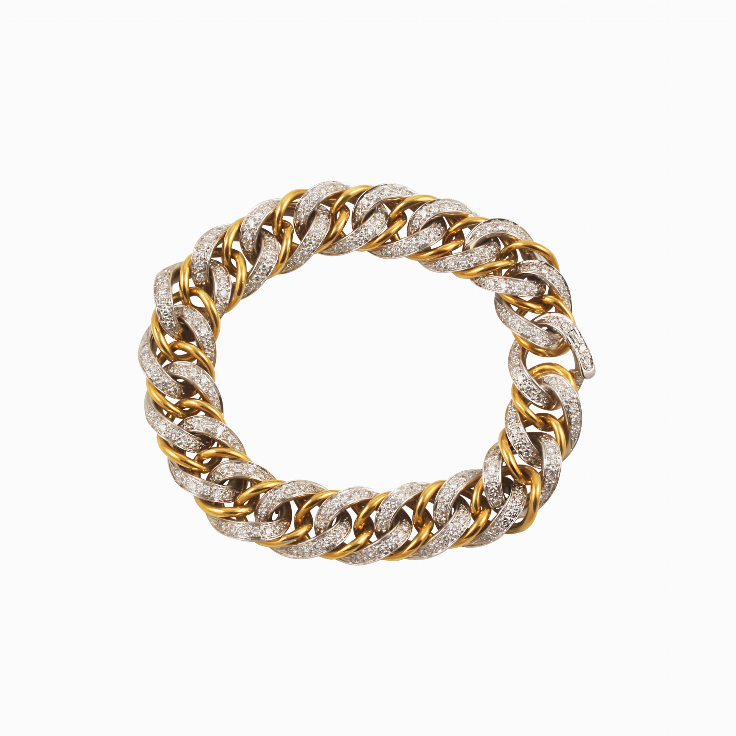 in oro giallo e bianco a maglia groumette ornato da brillanti del peso complessivo di 3 ct ca., gr. 74,3.Lunghezza 19 cmFirmato: Pomellato