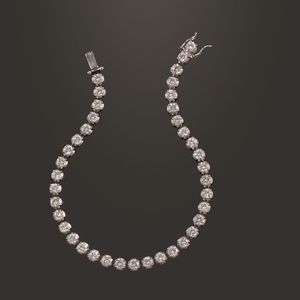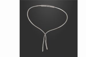 rivière di brillanti del peso di 3,60 ct ca. realizzata in oro bianco, gr. 24,6. Corredata da custodia. Lunghezza [..]