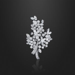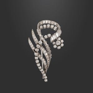 a clip raffigurante un mazzo di fiori realizzata in platino, brillanti, diamanti navettes e a goccia. Diamanti [..]