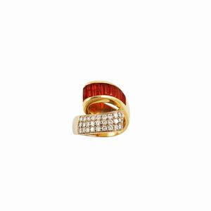 in oro giallo a nastro ritorto con pavé di brillanti e ambre (fêlure), gr. 13,9. Misura 16,5 Firmato: Giò [..]