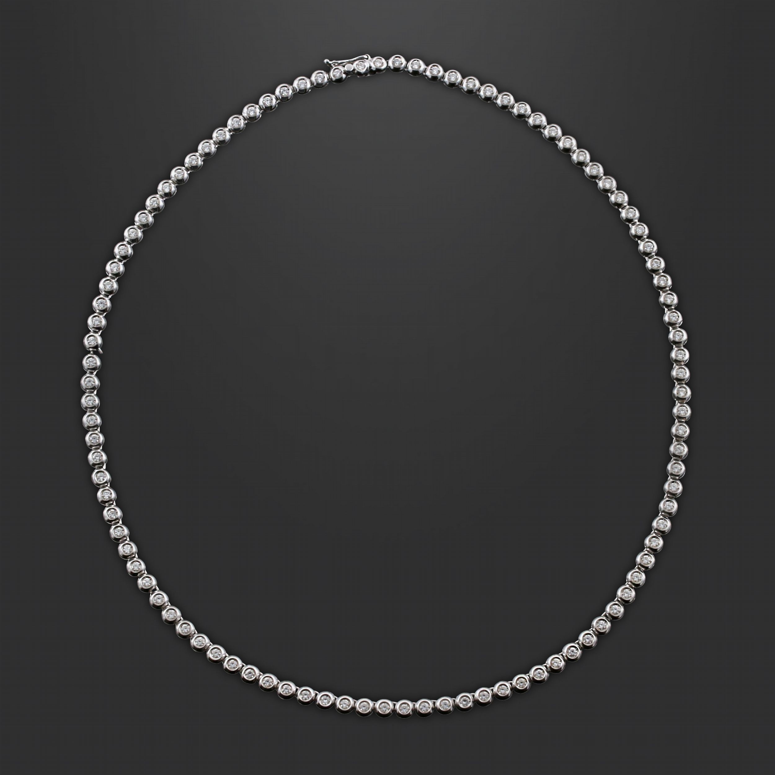 rivière di brillanti del peso di 3,60 ct ca. realizzata in oro bianco, gr. 24,6. Corredata da custodia.Lunghezza 42 cmNumerario: 3181 AL (Casa Damiani s.p.a. - Valenza)
