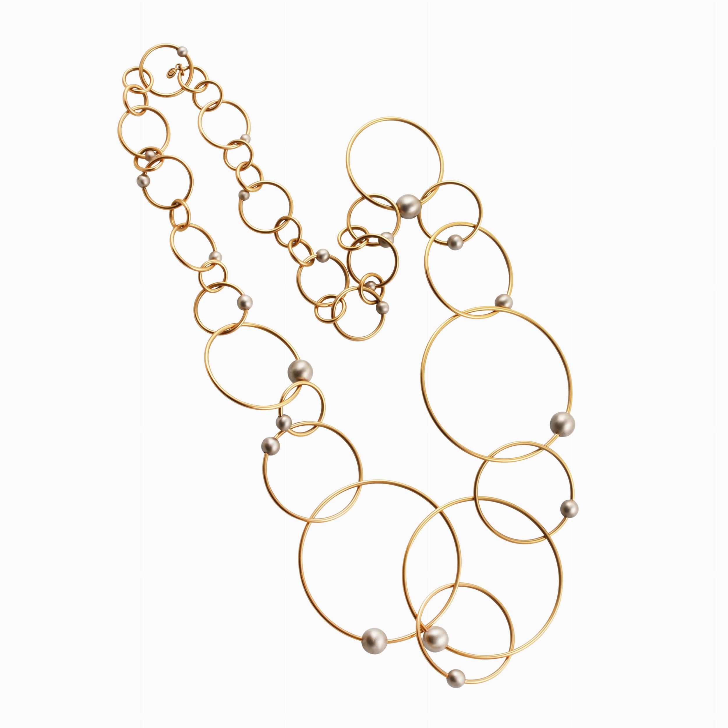 a cerchi in oro rosa con boules in oro bianco satinato, gr. 71,7.Lunghezza 65 cm ca.Numerario: 10 MI (Micheletto s.r.l. - Milano)