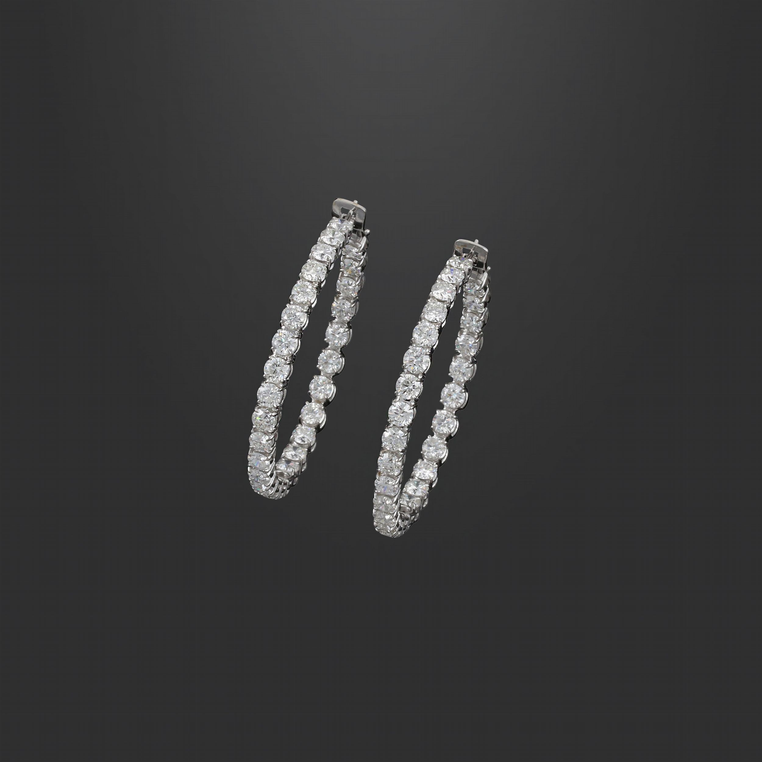 a cerchio in oro bianco interamente percorsi da brillanti del peso complessivo di 14 ct ca., gr 24,7.Diametro 5 cm