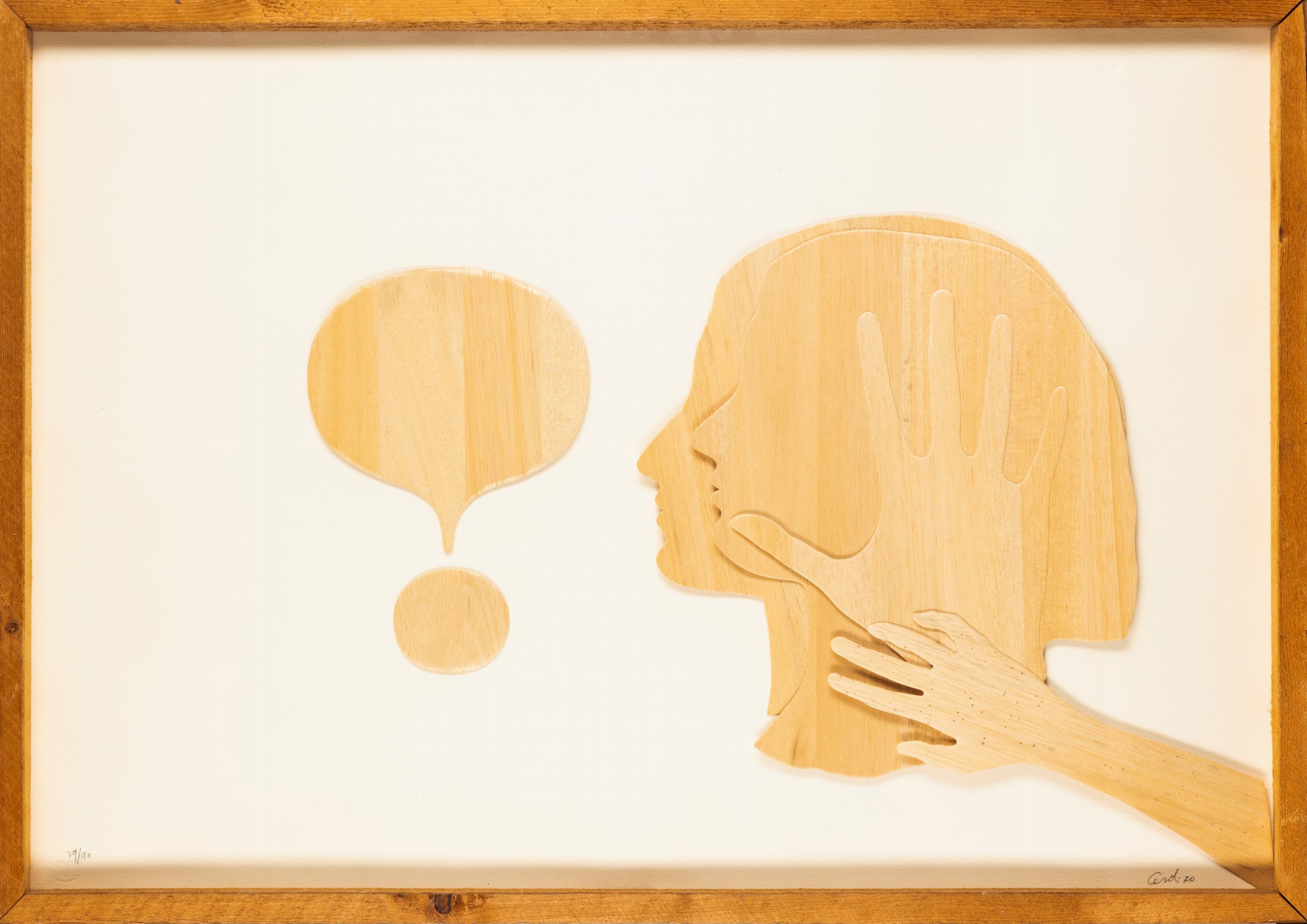 collage di legni applicato su cartoncino, Largh. 103 - Alt. 73 Cm