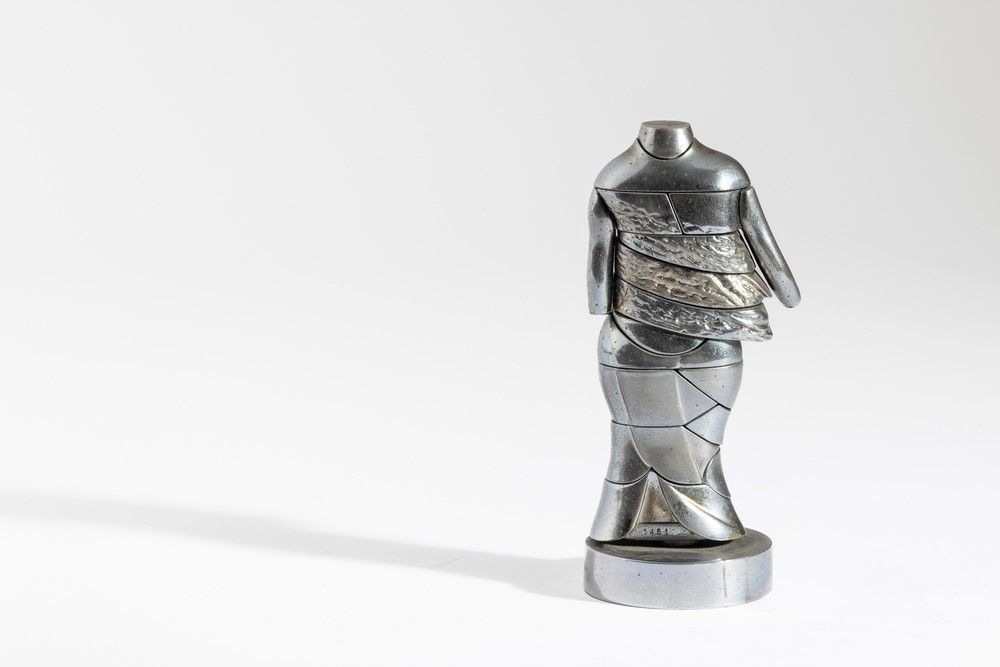 scultura in metallo nichelato, Largh. 6,8 - Prof. 3,5 - Alt. 15 Cm