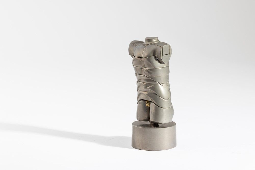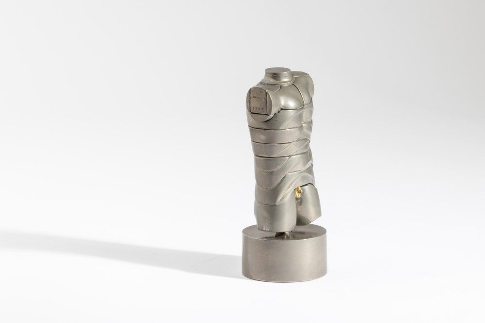 scultura in metallo nichelato, Largh. 5,5 - Prof. 3,7 - Alt. 14 Cm