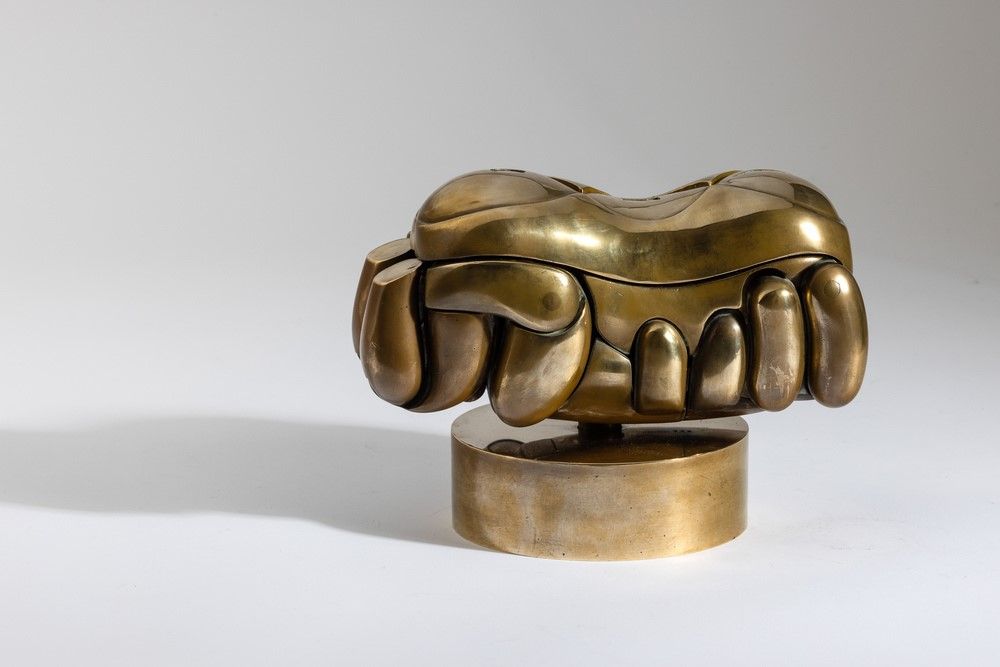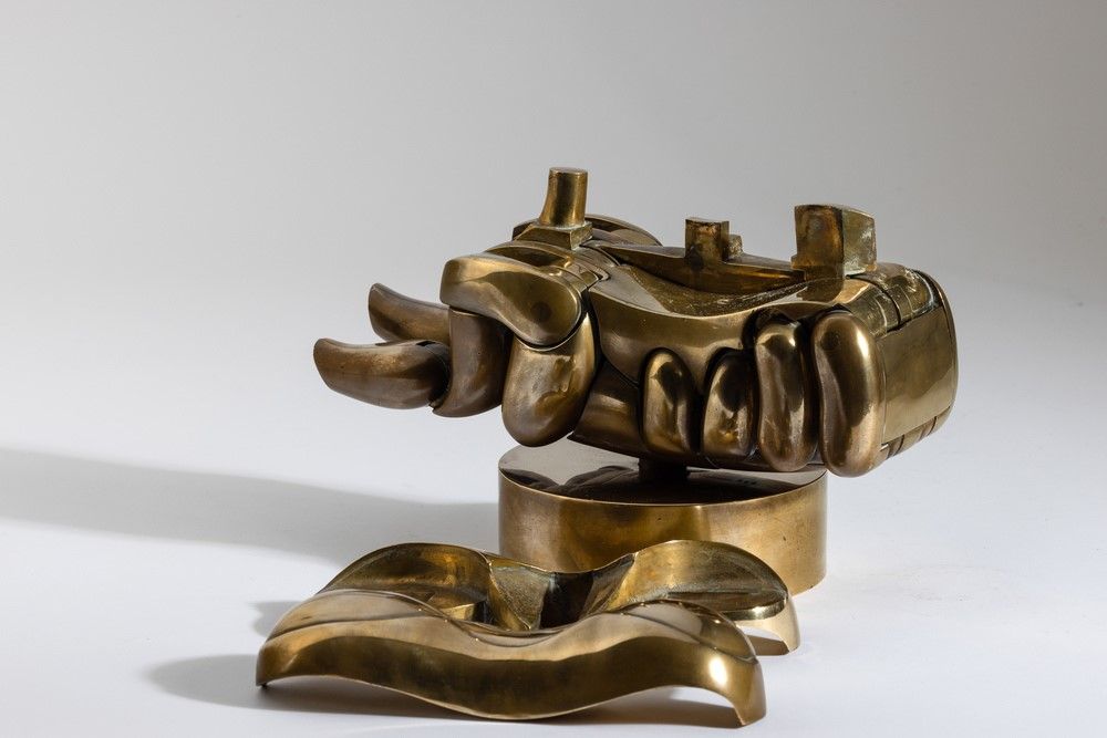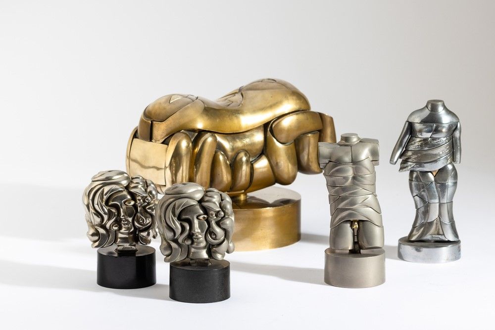 scultura in ottone lucidato composta di 16 elementi, Largh. 12 - Prof. 9 - Alt. 21 Cm