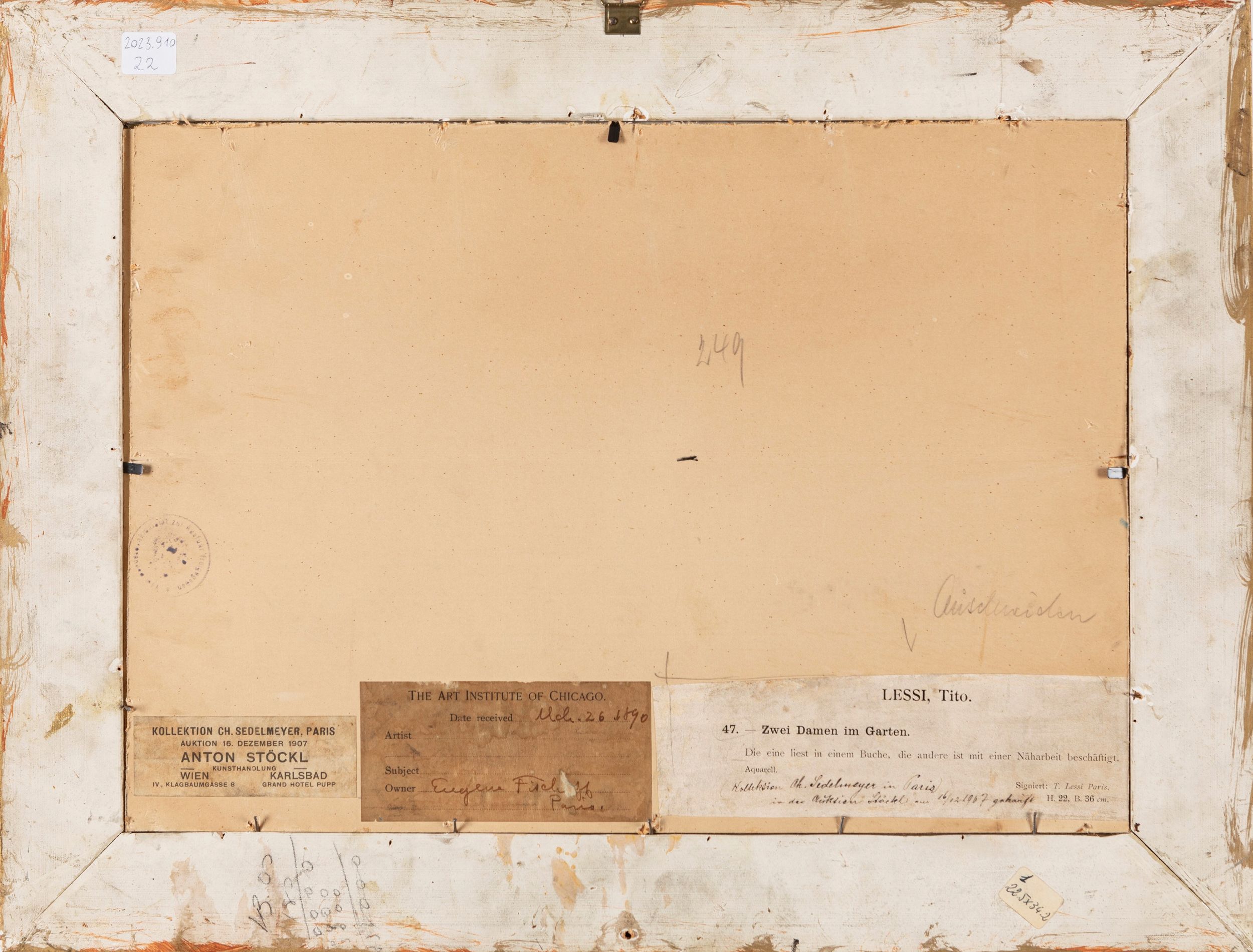 firmato e locato in basso a destra: T. Lessi / Parisal retro, sul cartoncino di chiusura, etichetta di provenienza (collezione Sedelmeyer, Parigi, 1907), etichetta dell'Art Institute of Chicago (1890) ed etichetta di esposizione