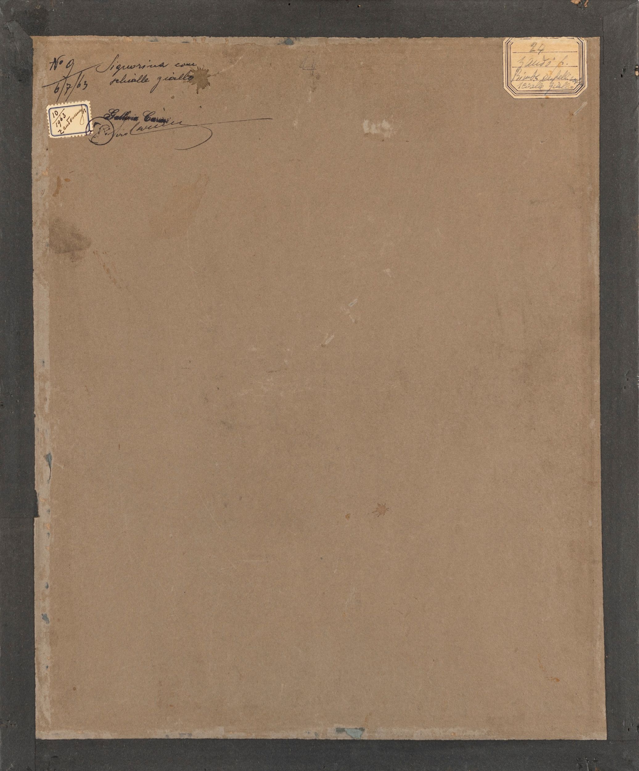 firmato in alto a destra: FZandomeneghial retro, sul cartoncino di chiusura, autentica della Galleria Carini e antica etichetta di inventario con numero progressivo 24