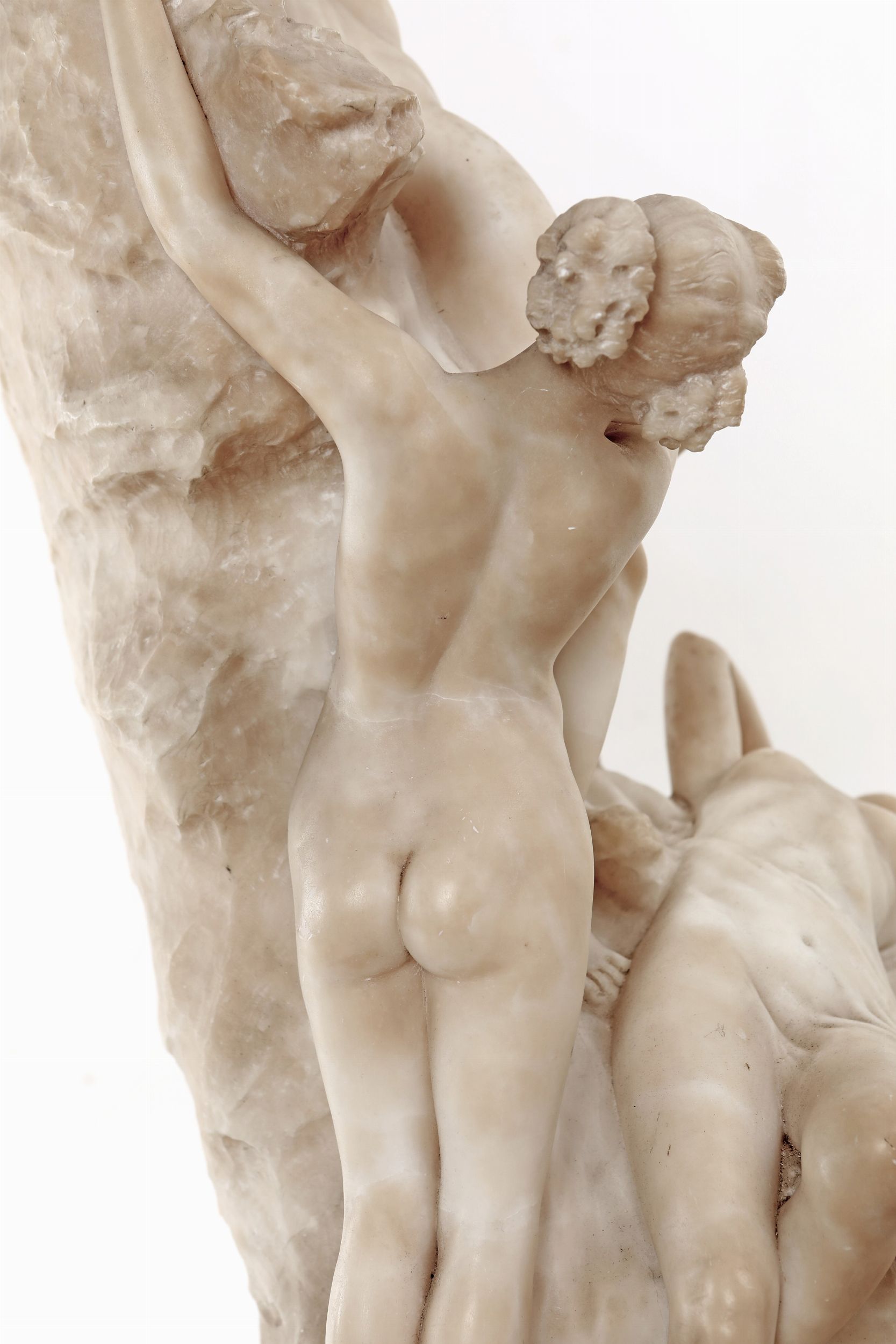 Gruppo scultoreo raffigurante tre giovani naiadi ritratte in movenze lascive su un costone roccioso