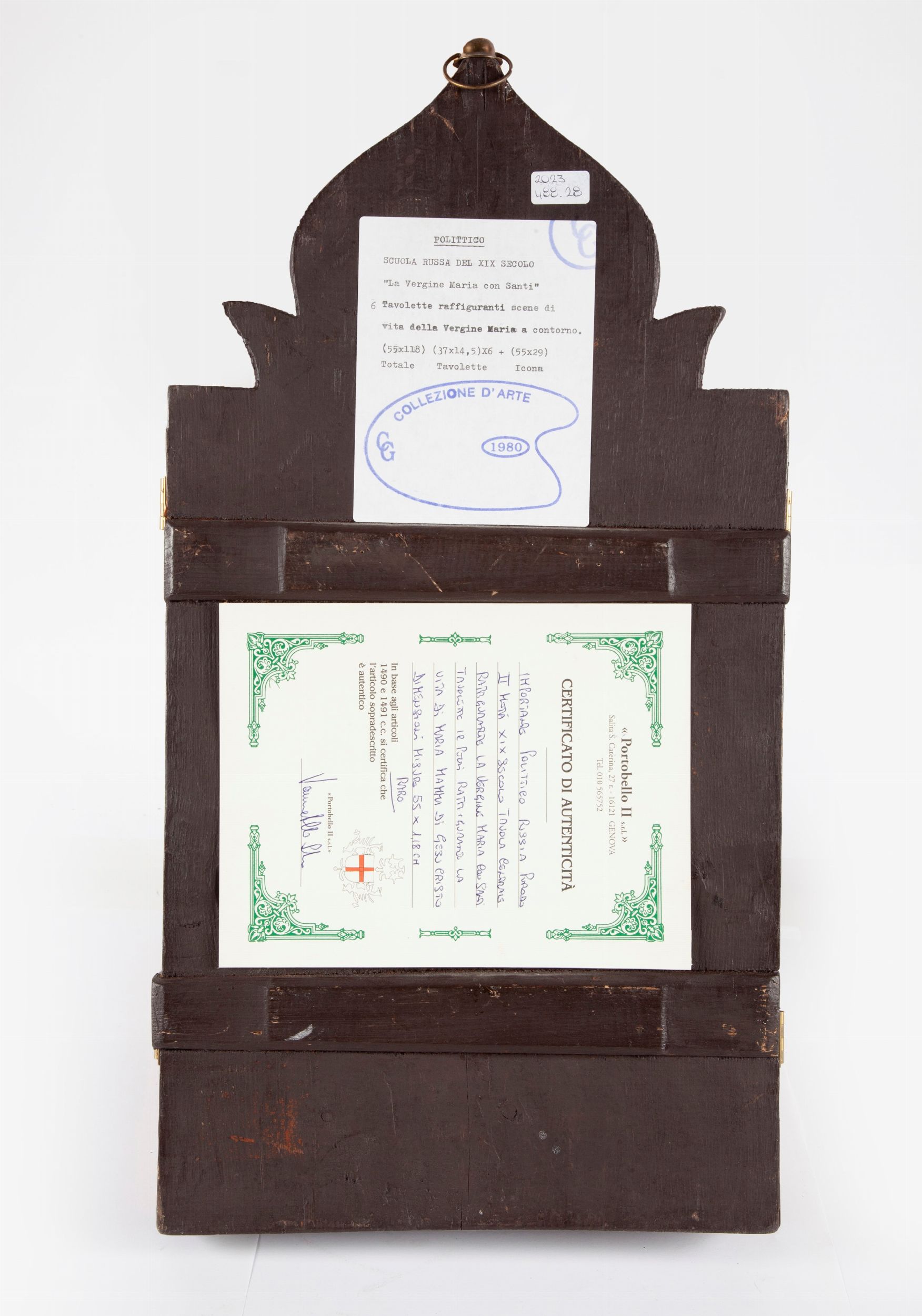 tempera all'uovo su tavola, cm 55x118 - icona centrale cm 55x29 - le sei cm 37x14,5 ognuna