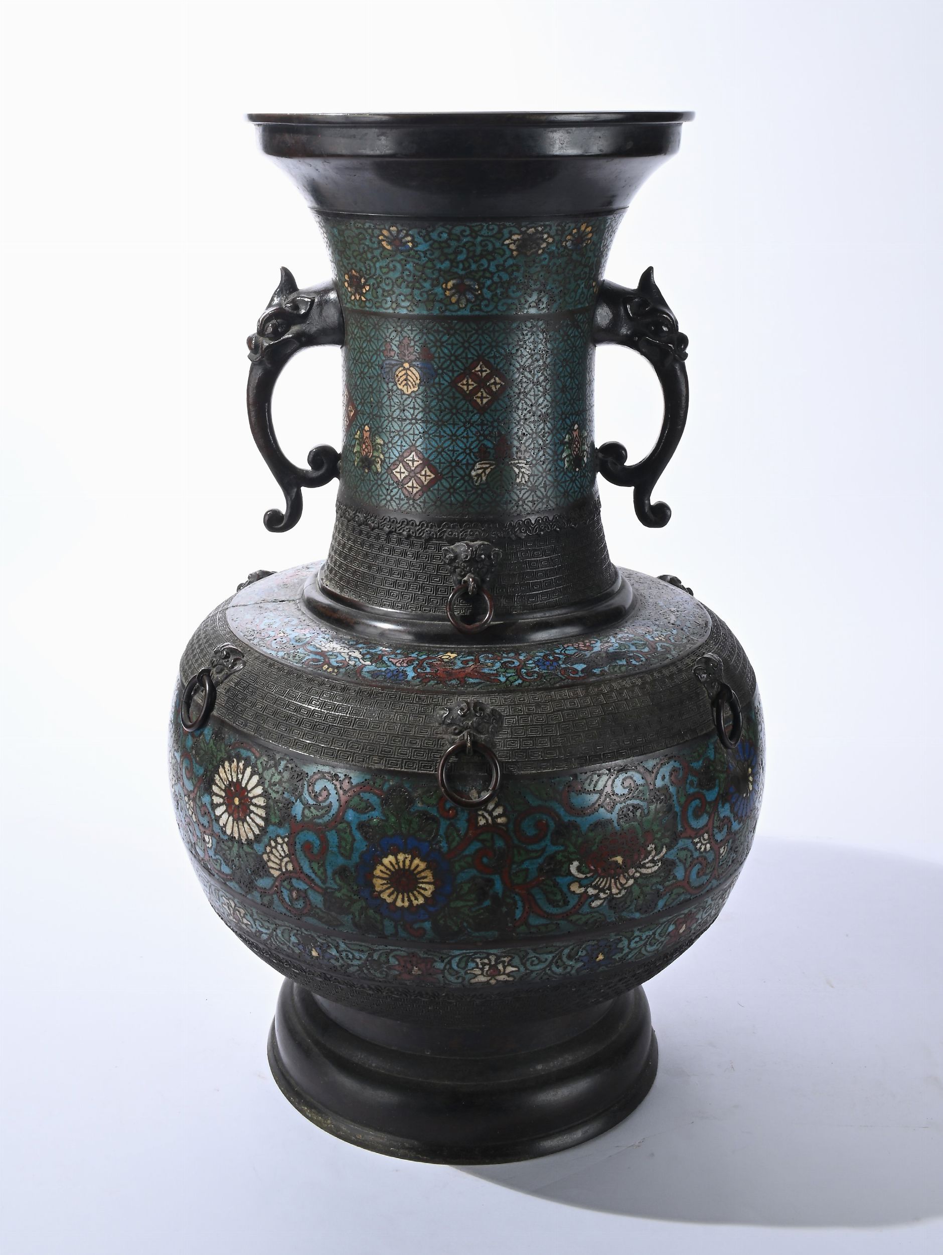 Vaso in bronzo brunito e smalti champlevé, Giappone, fine del XIX secolo