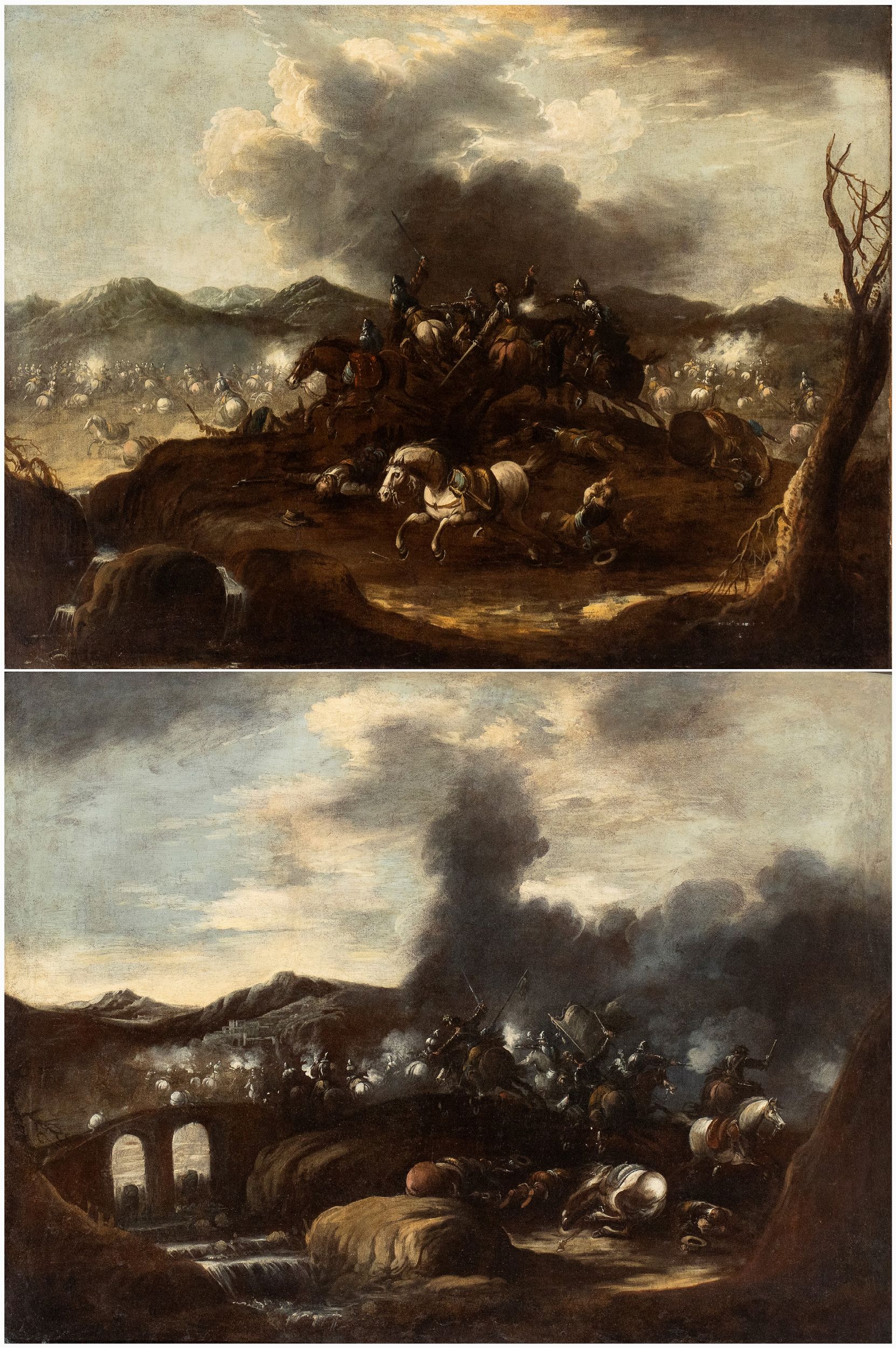 a) Scontro di cavallerie in campo aperto; b) scontro di cavallerie nei pressi di [..]