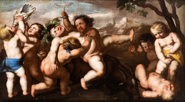 Baccanale di putti in un paesaggio